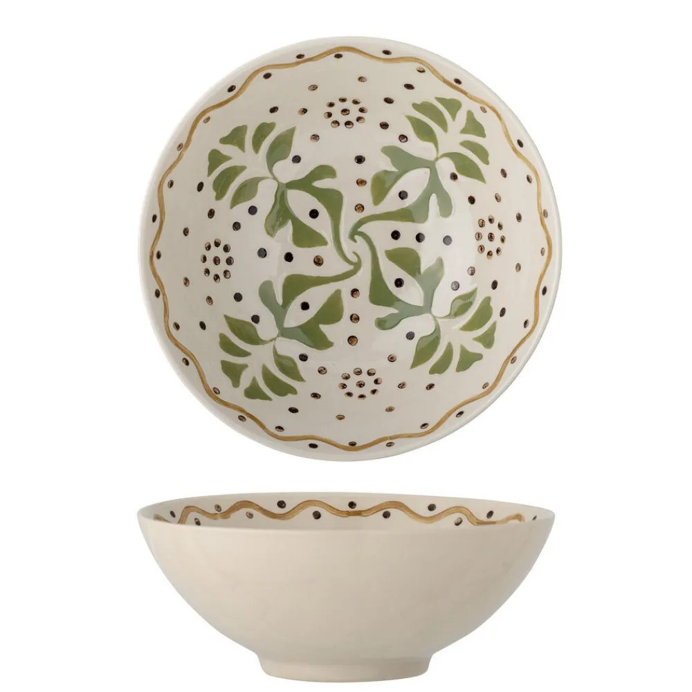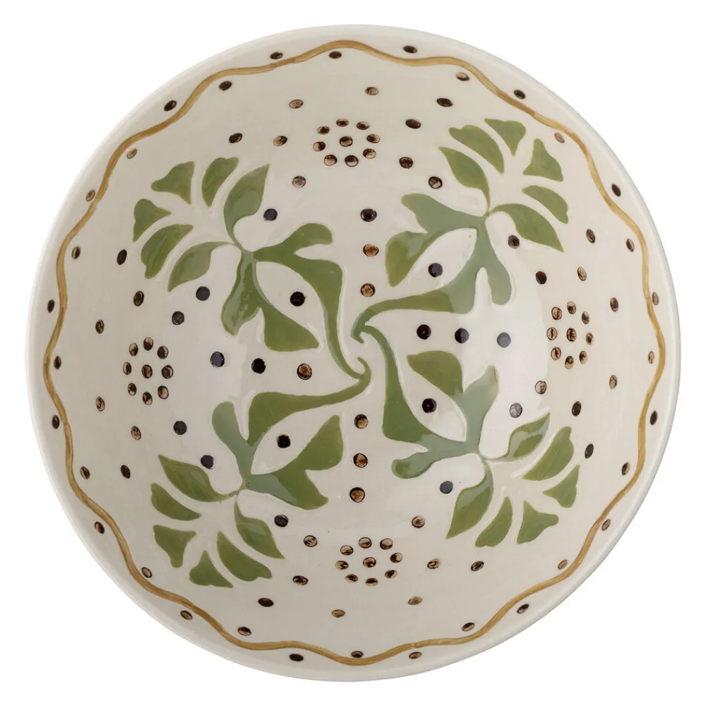 Heikki Schale 860 ml. aus Steingut von Bloomingville aus Dänemark. Die Heikki Schale von Bloomingville ist eine wunderschöne Schale mit einem handgemalten Muster in grünen und braunen Nuancen. Die feine Handwerkskunst macht jede Schale einzigartig und verleiht Ihrer Tischdekoration eine gemütliche und rustikale Atmosphäre. Jede Schale ist ein Unikat, da jeder Pinselstrich eine persönliche Note hinzufügt und eine Variation im Design schafft.