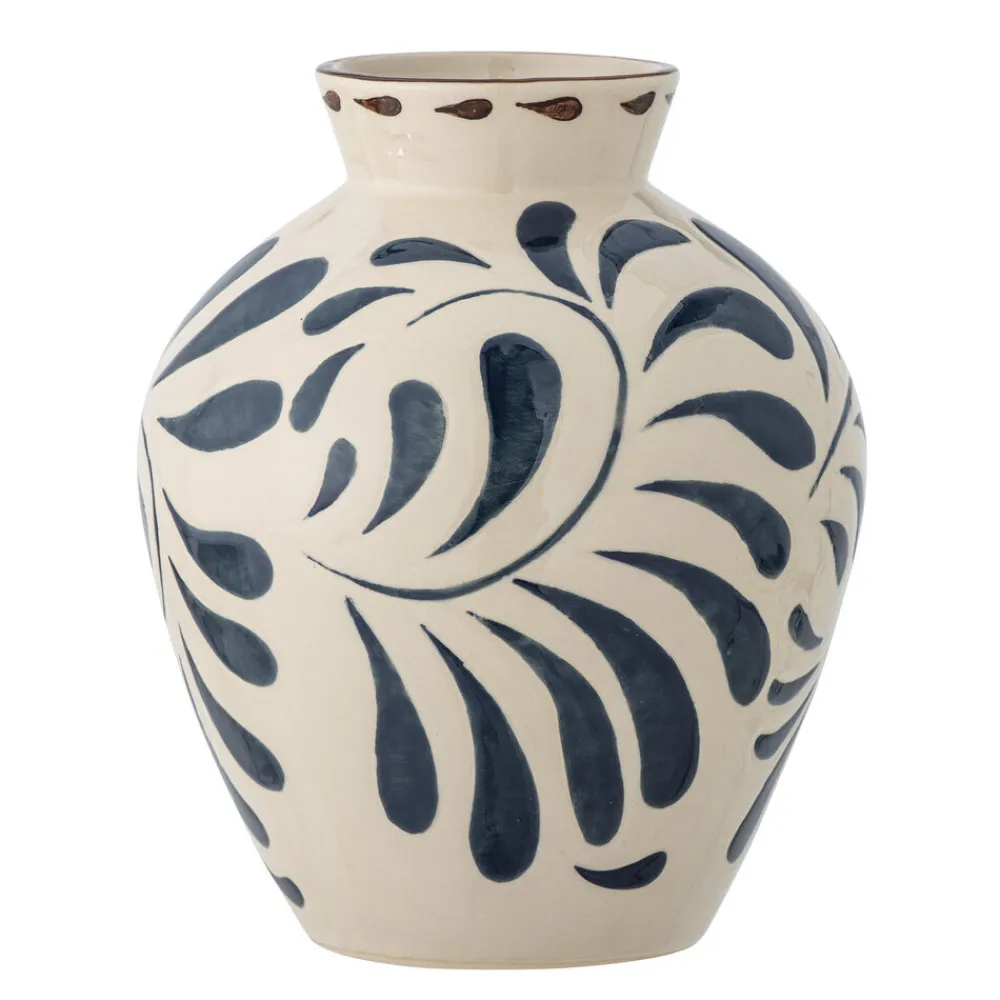 Die Heikki Vase blau aus Steingut von Bloomingville aus Dänemark. Handgemalte Details zieren die Heikki Vase von Bloomingville und symbolisieren die Perfektion des Handgemachten und die Schönheit, wie Variationen in Farben, Formen und Materialien Einzigartigkeit schaffen. Die Vase ist aus Steingut wunderschön gefertigt mit einem lieblichen geprägten blauen Muster. Da die Vase handdekoriert ist, können Variationen in Farbe und Muster auftreten.