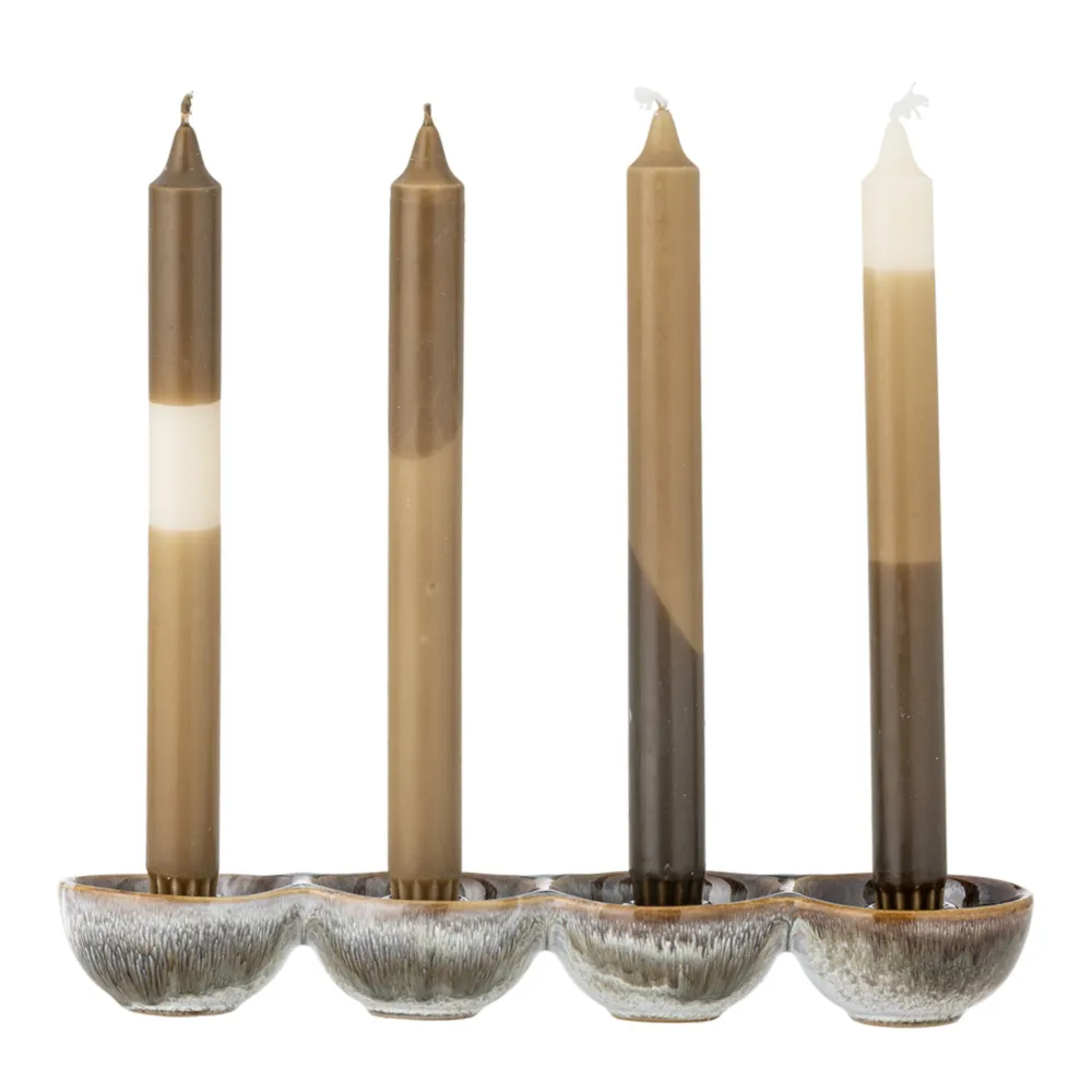 Kalia Adventskerzenständer, Braun, Steingut von Bloomingville aus Dänemark. Der Kalia Adventskerzenhalter von Bloomingville besteht aus Steinzeug und ist mit einer wunderschönen reaktiven Glasur versehen, die ein einzigartiges und lebendiges Farbspiel erzeugt. Die warmen Braun- und Grautöne machen ihn zu einer eleganten Ergänzung für den Weihnachtstisch oder als Dekoration auf der Fensterbank. Perfekt für die Adventszeit, in der er eine gemütliche und stilvolle Atmosphäre schafft.