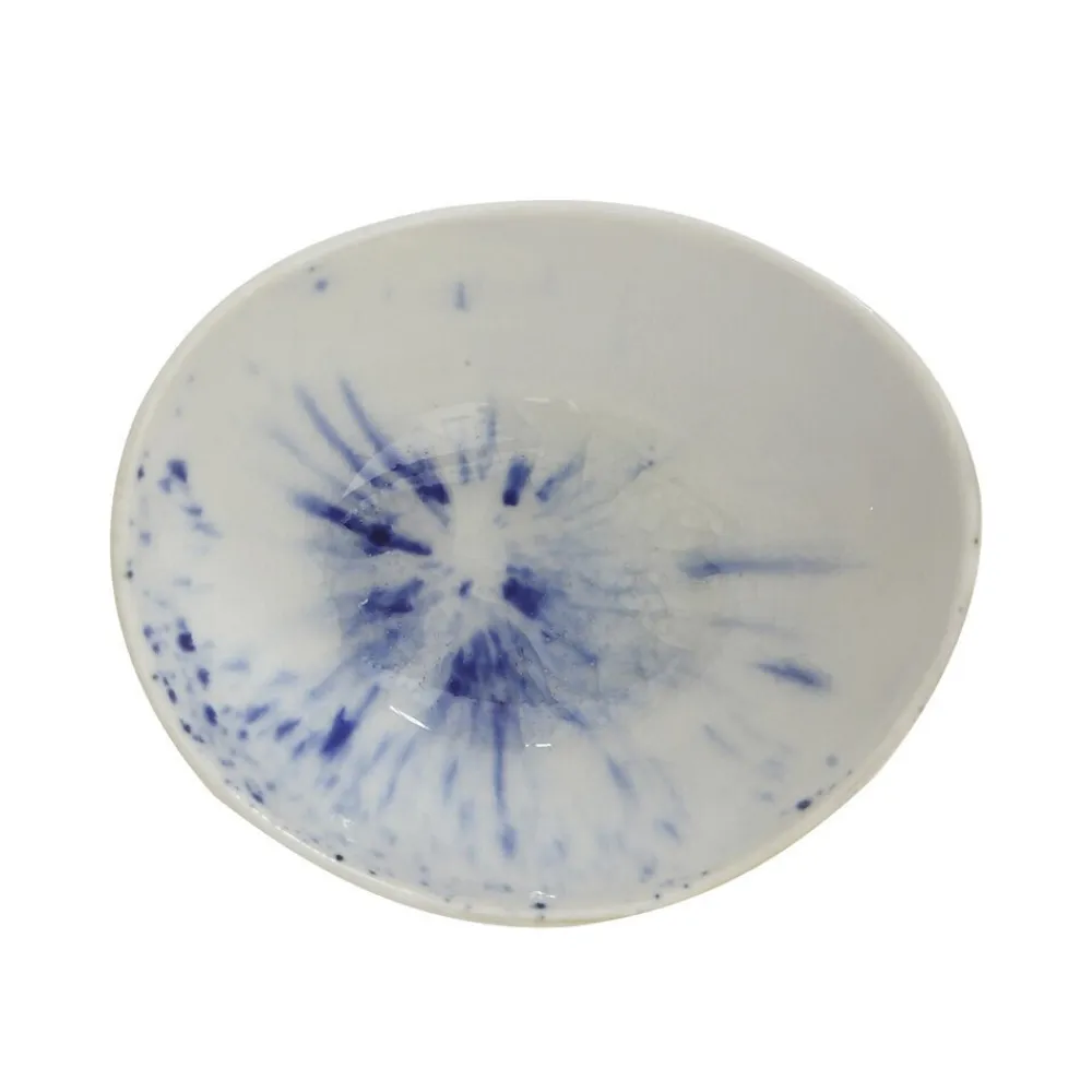 Serviere in dieser entzückenden Schale Heather aus Steingut von Bloomingville Speisen wie Suppen, Gebäck oder Spieße. Der spannende Sprenkel Look in weiß und blau macht jede dieser Schüsseln zu einem Unikat, das wunderbar mit dem Boho Living Stil harmoniert.
