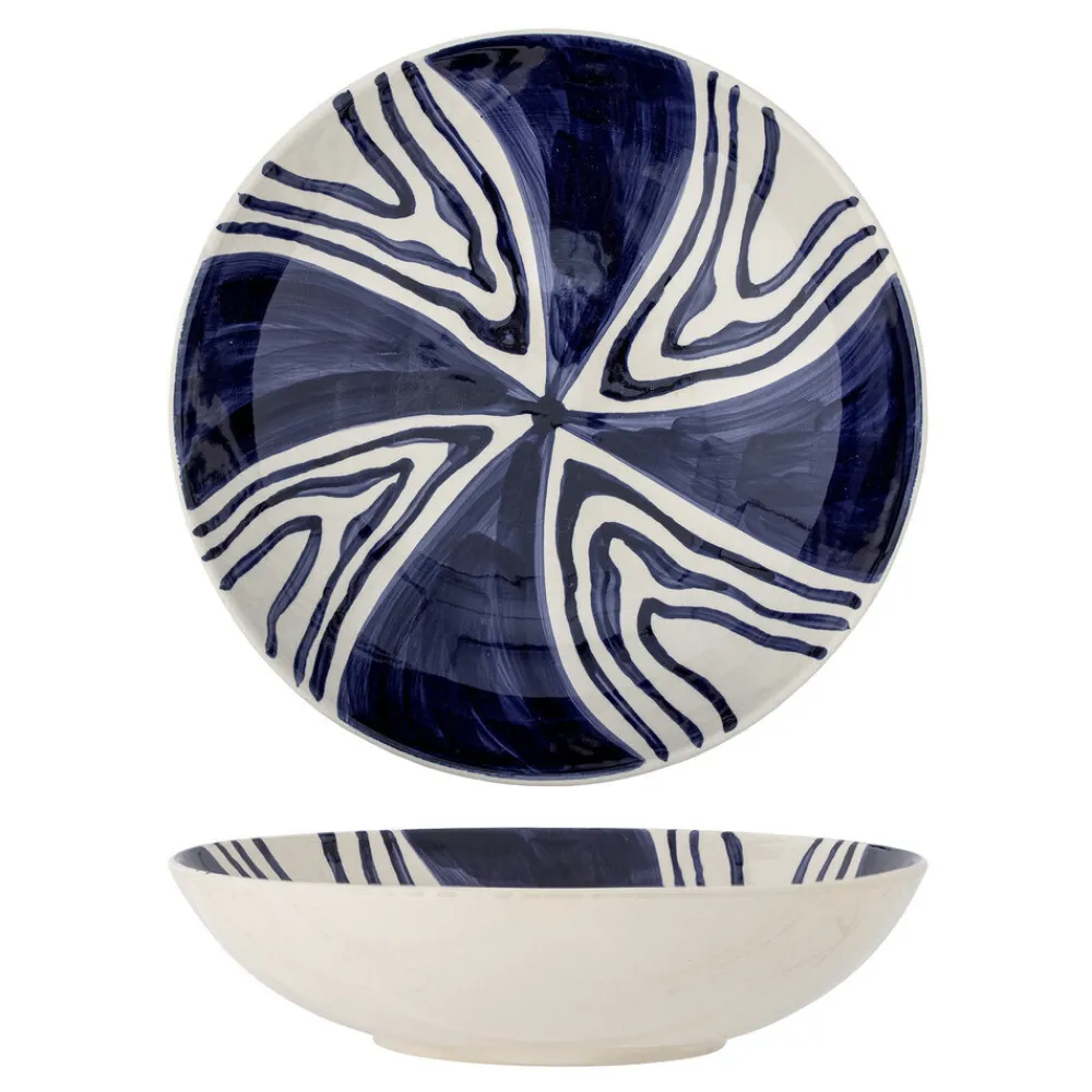 Die Shama Schale blau aus Steingut von Bloomingville aus Dänemark. Die Shama Schale von Bloomingville ist eine einzigartige und schöne Ergänzung für Ihre Tischdekoration. Mit ihrer handbemalten, dunkelblauen Farbe und dem Muster in hellen Nuancen erzeugt sie einen künstlerischen und eleganten Ausdruck. Kombinieren Sie verschiedene Muster oder einfarbiges Geschirr, um Ihren Stil zu individualisieren. Jede Schale wird einzigartig sein, da jeder Pinselstrich eine persönliche Note hinzufügt und Variationen im Design erzeugt.