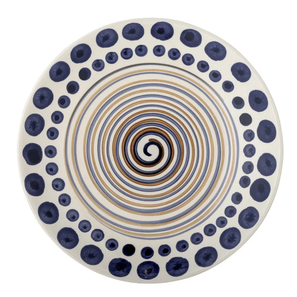Die großen Shama Teller aus Steingut von Bloomingville aus Dänemark. Der Shama Teller von Bloomingville ist eine schöne Ergänzung für Ihre Tischdekoration und eignet sich ideal als Essteller. Das handgemalte Muster in dunkelblauen und orangefarbenen Nuancen verleiht einen künstlerischen Ausdruck. Kombinieren Sie verschiedene Muster oder einfarbige Teller, um Ihren Stil anzupassen. Jeder Teller ist einzigartig, da jeder Pinselstrich eine persönliche Note hinzufügt und Variationen im Design erzeugt.