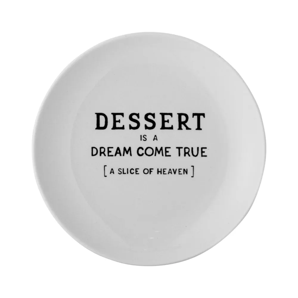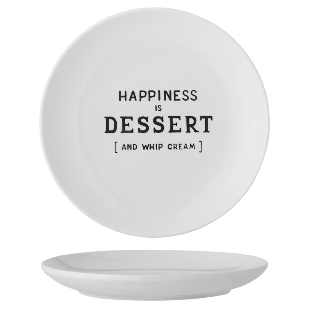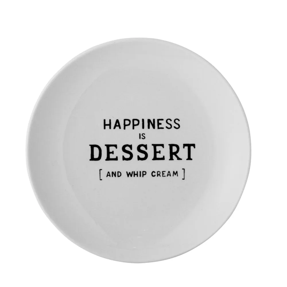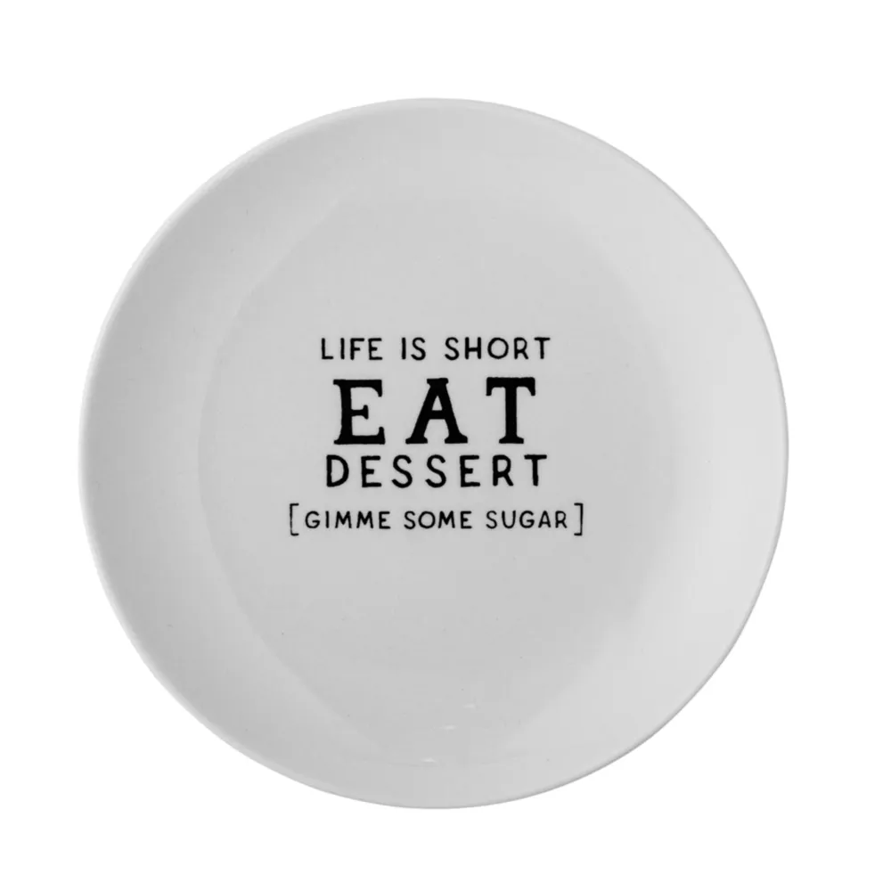 Telly Wendy mit Schrift, Steingut von Bloomingville aus Dänemark. Wendy Teller von Creative Collection ist ein süßer und gemütlicher Dessertteller – bedruckt mit verschiedenen Zitaten. Der Kuchenteller ist aus Steingut mit einer weißen Glasur und schwarzem Druck. Ein lustiger und süßer Teller für jede Dessertanrichtung und Naschkatzen.