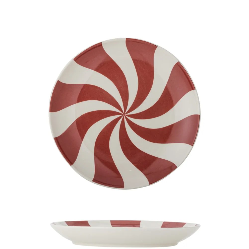 Yule Teller, Natur, Steingut von Bloomingville aus Dänemark. Der Yule Teller von Bloomingville ist der perfekte Mittagsteller für Feiertagszusammenkünfte. Mit seinem auffälligen Spiralmuster in Rot- und Weißtönen fügt dieser Teller eine spielerische und festliche Atmosphäre zu jeder Mahlzeit hinzu. Sein Design macht ihn ideal für das Servieren sowohl traditioneller als auch moderner Weihnachtsgerichte.