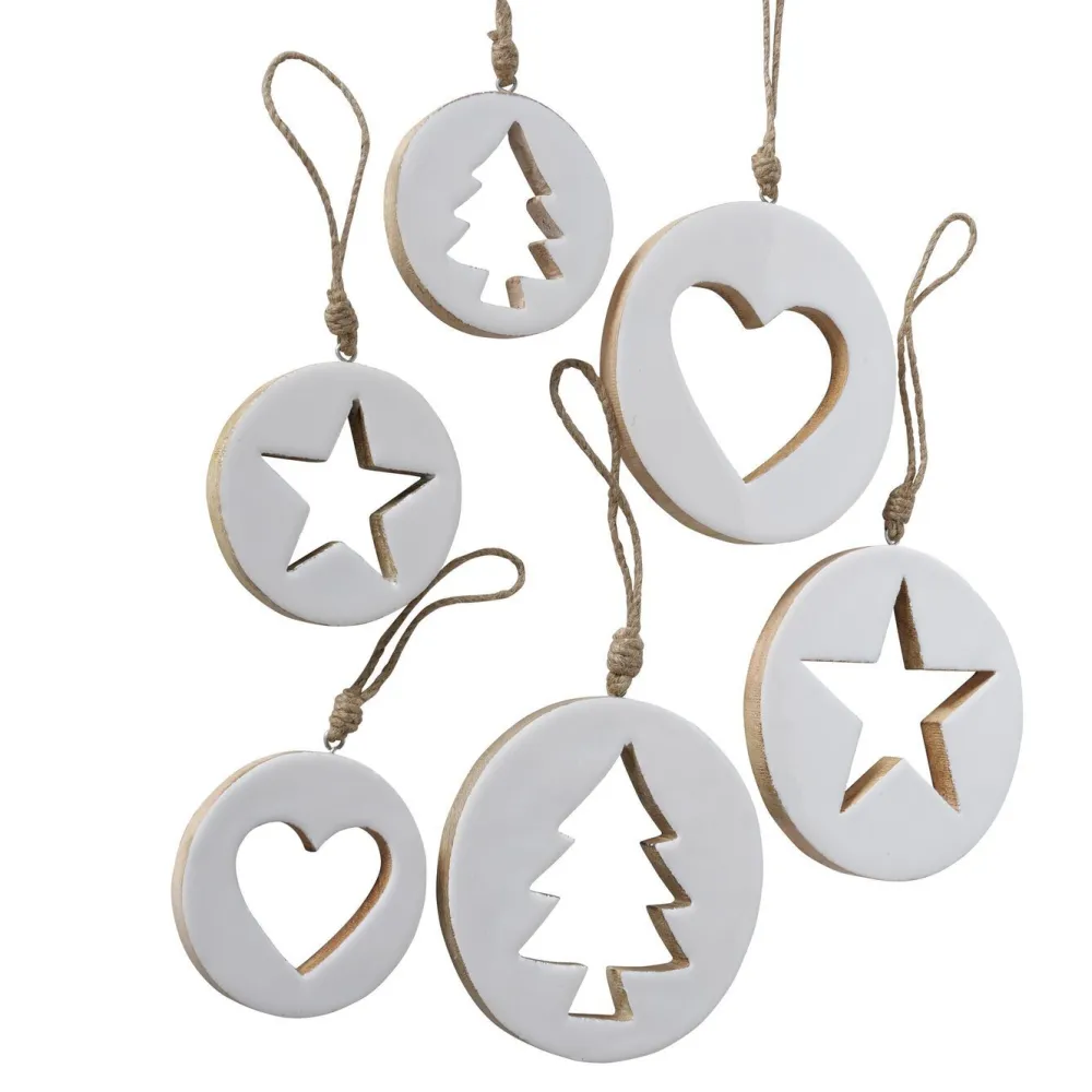 Dir wird ein 2er Set aus einem großen und einem kleinen Motiv je nach Lagerbestand zusammengestellt. Ob niedliches Herz, weihnachtlicher Baum oder hübscher Stern, die Anhänger machen sich super an grünem Geäst.