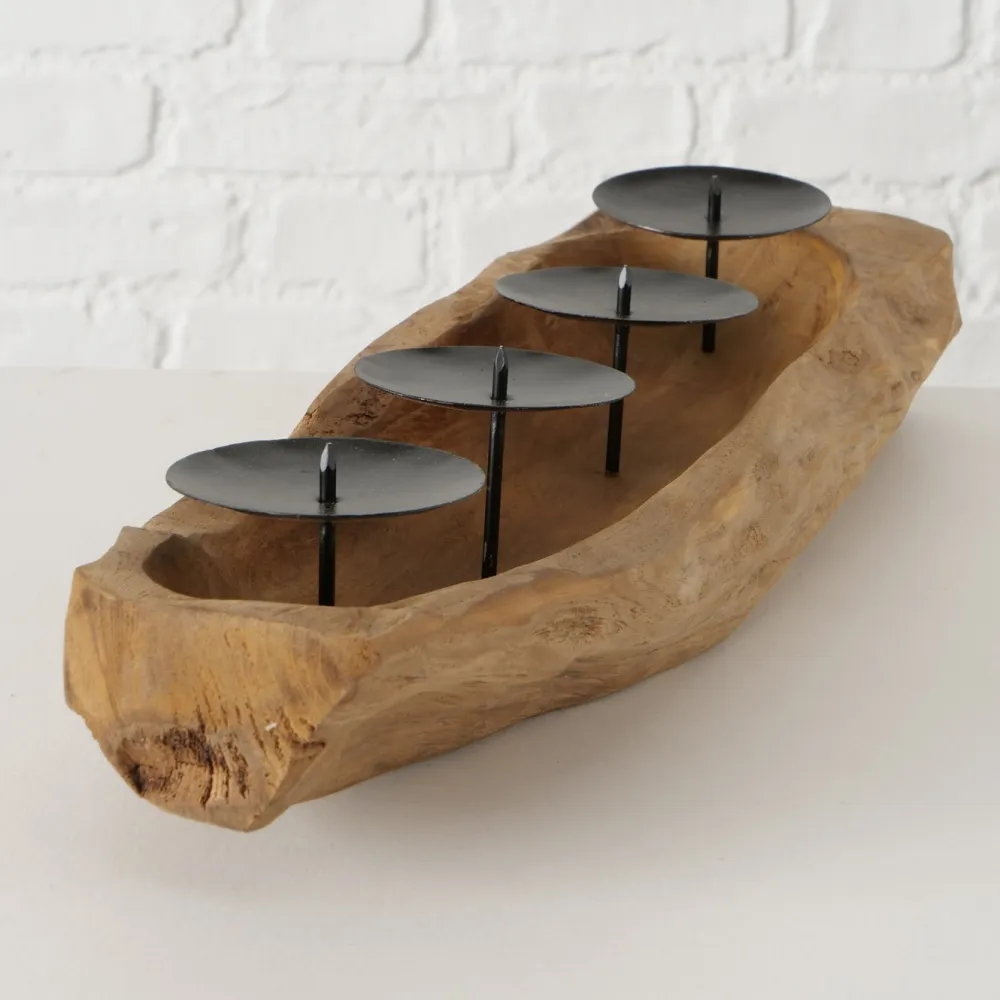 Wunderbarer Kerzenhalter Nafia aus Teakholz mit 4 Halterungen für Stumpenkerzen.