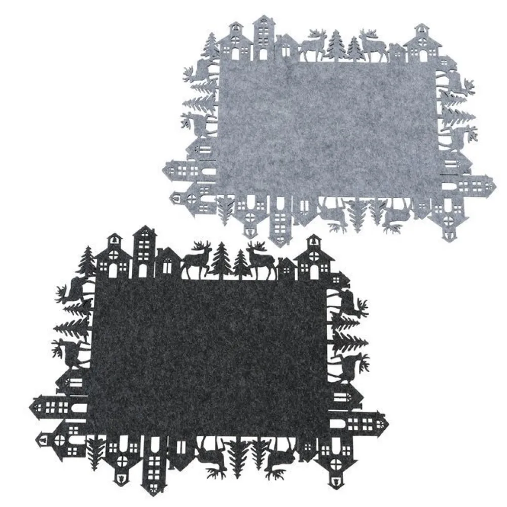Dieses schicke Tischset Towney im 2er Set aus der Serie Holiday Mountains von Boltze bietet deinem Geschirr einen angenehmen Platz am Esstisch und sieht auch noch toll aus. Aus weichem Filz ist diese Unterlage mit Häuschen, Tannen und Hirschen ein praktischer Helfer zu Dinner Partys und Kaffeekränzchen.