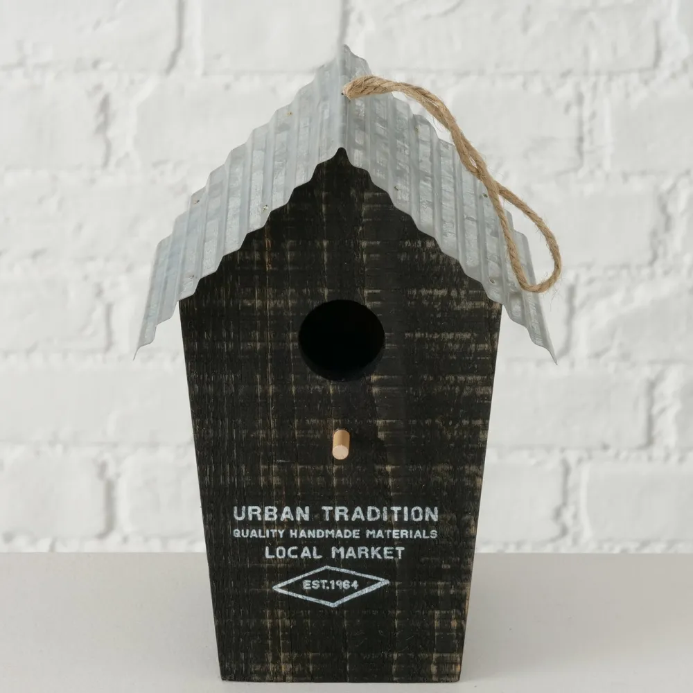 Das einladende Vogelhaus Local aus Spießtanne und der Industrial Garden Serie von BOLTZE ist in zwei Varianten in Schwarz und Natur Farben vorhanden. Hiervon wird dir eine Version je nach Lagerbestand nach Hause geschickt und erfreut umziehende Vögel in der Umgebung.