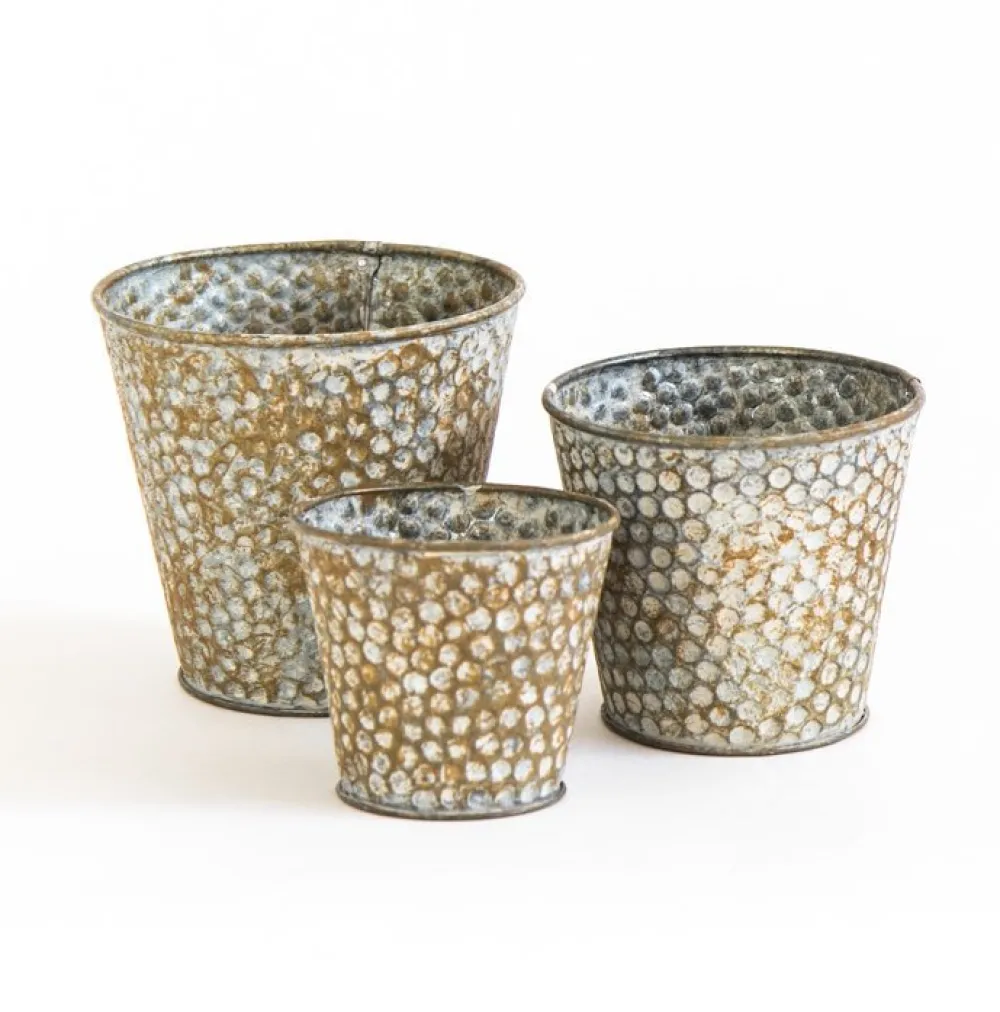 Dieses Pflanztopfset mit Muster von byRoom eignet sich bestens, wenn du ein wenig atmosphärische Stimmung in deinem Zuhause oder Garten schaffen möchtest. Durch das anspruchsvolle Lochmuster wird eine Tiefe geschaffen, welche nur so vor Persönlichkeit strahlt. Die drei Pflanztöpfe lassen kleine Pflanzen und Blumen in einem neuen Licht erstrahlen. Nutze sie auch für Teelichter oder andere antike Akzente.