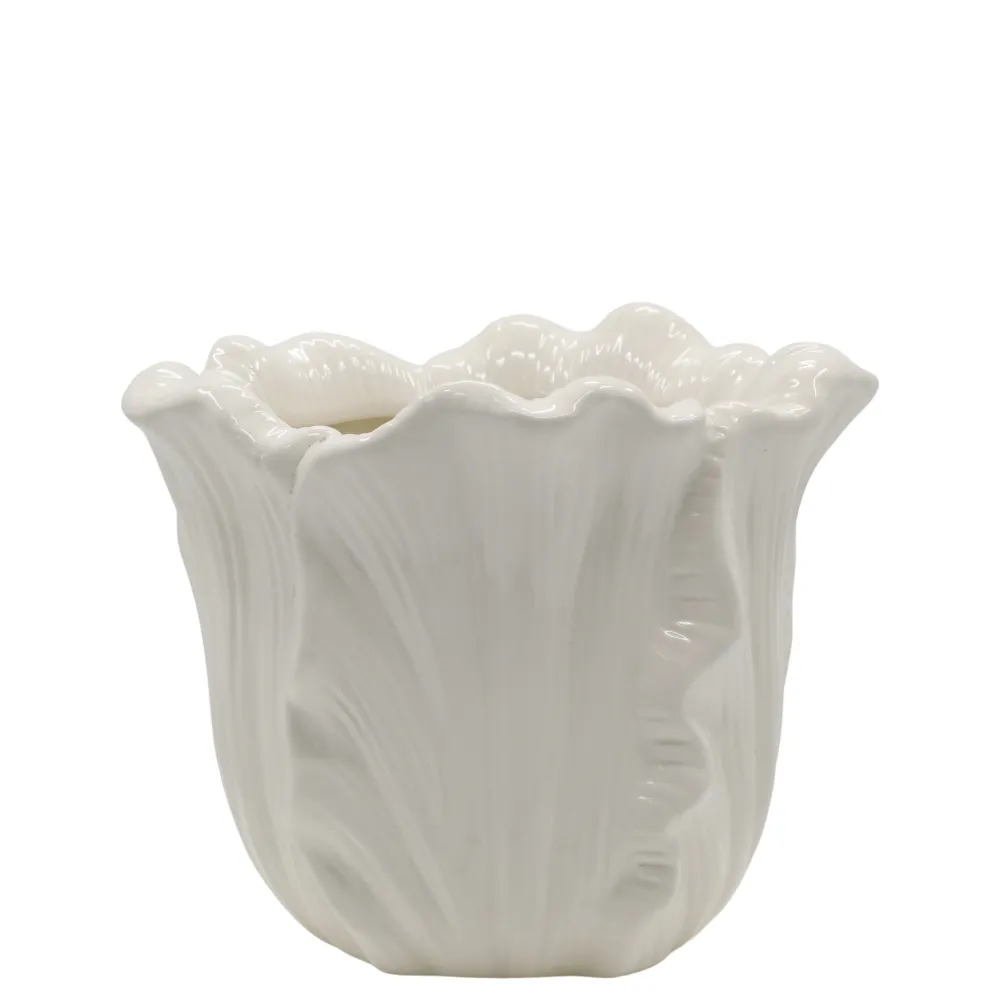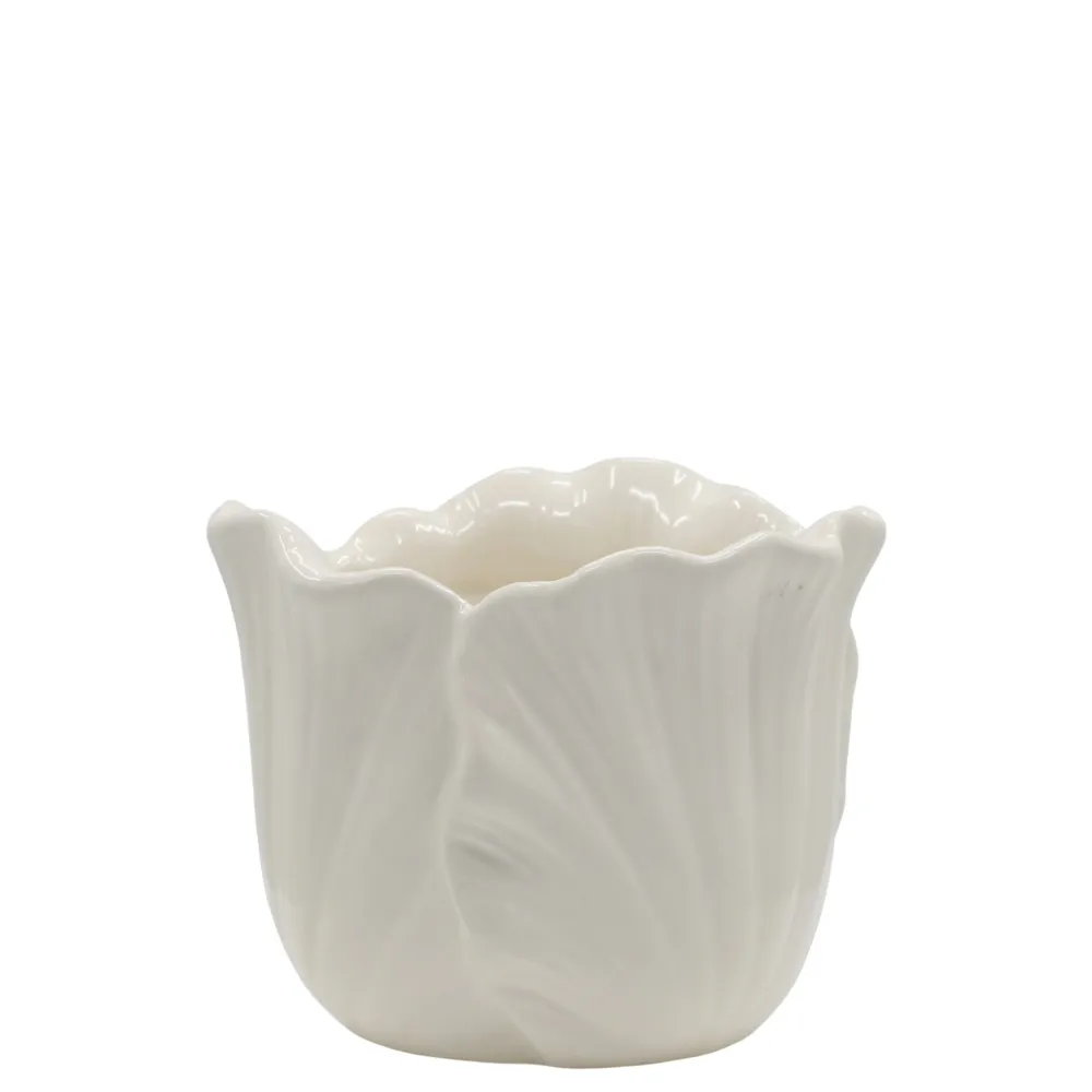 Fayence Blumentopf mit Blätter von Chic Antique, Dänemark.