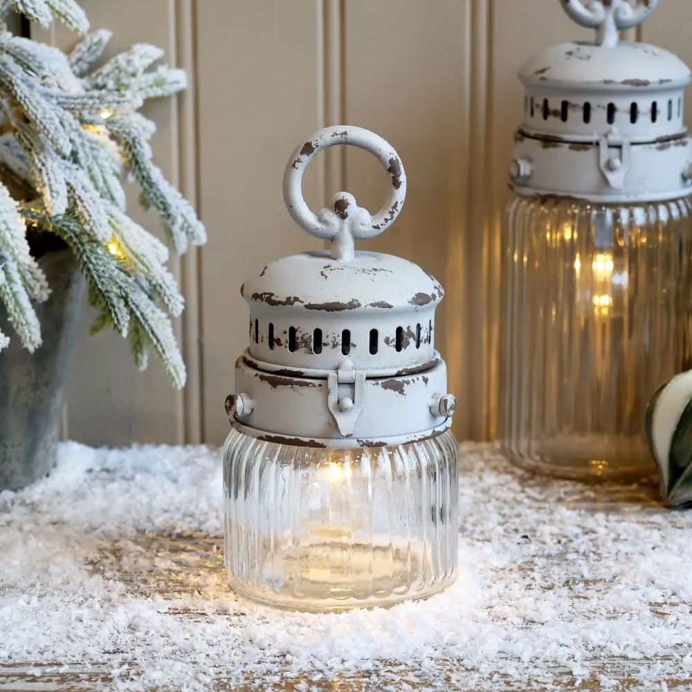 Chic Antique Französische Stalllaterne inkl. Birne & Timer weiß