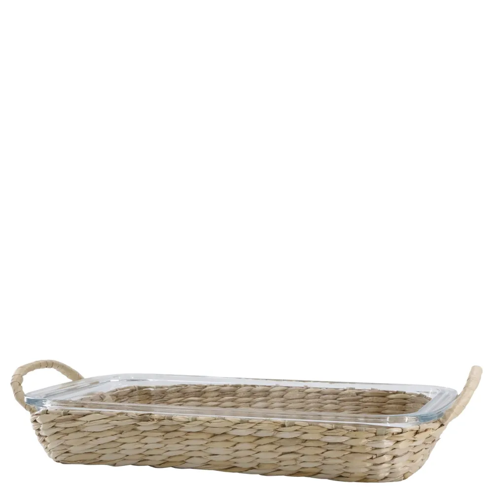 Chic Antique Glas Tablett mit geflochtenem Tablett, Auflaufform