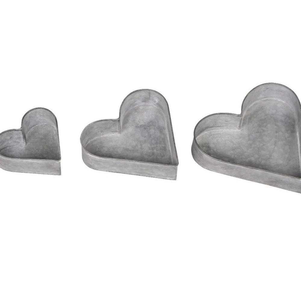 Chic Antique Herz Tablett 3er Set Zink-Look
