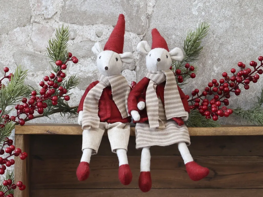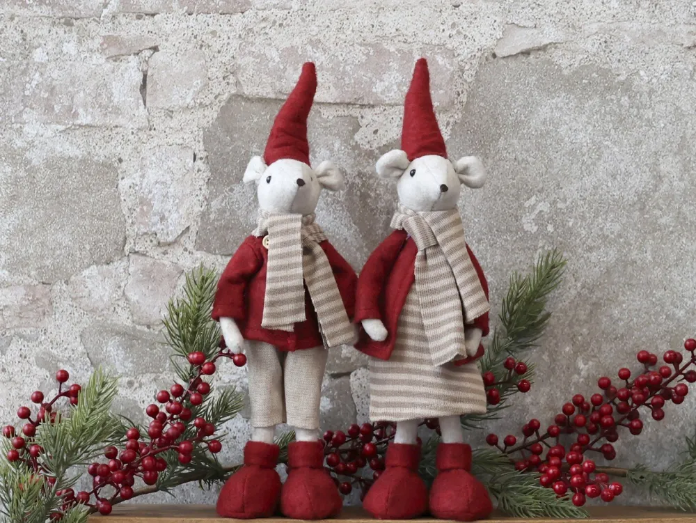 Julius & Juliane Weihnachtsmäuse stehend oder sitzend von Chic Antique, Dänemark.