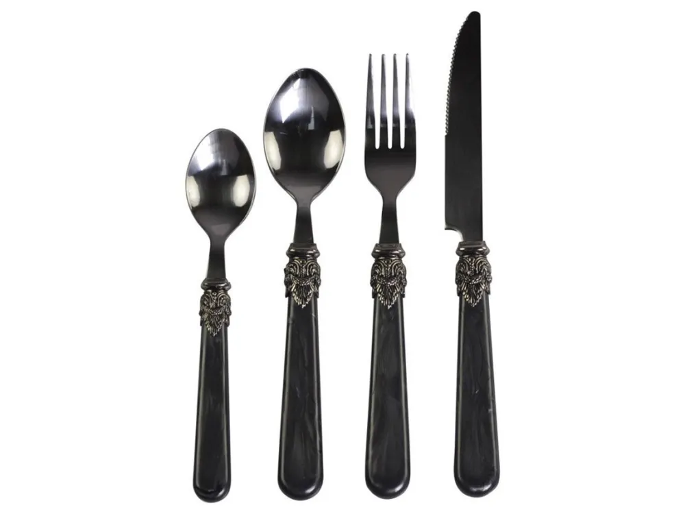 4-teilig: 1 x Löffel, 1 x Gabel, 1 x Messer, 1 x Teelöffel
