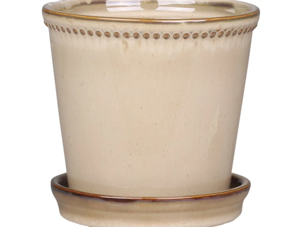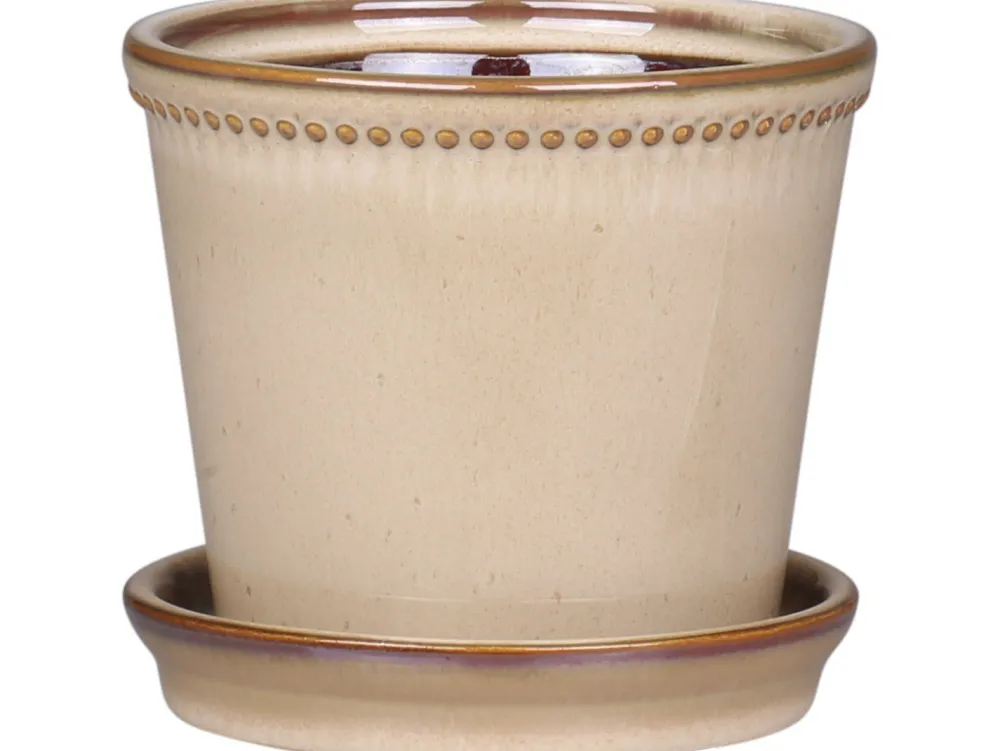 Dieser tolle Nimes Übertopf mit Perlenkante und Unterschale von Chic Antique Dänemark ist ein schönes Schmuckstück für deine Blumen und Pflanzen. Bette sie stilvoll in diese beigen Töpfe aus Keramik ein und erfreue dich an ihrem erdigen Look. Ob farbenfrohe Orchidee oder frische Grünpflanze, in diesem Topf sehen viele Pflanzen gut aus und schaffen eine natürliche Note.