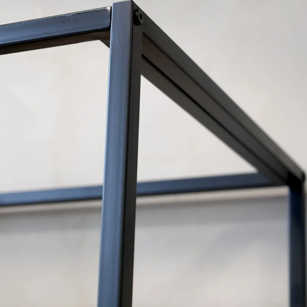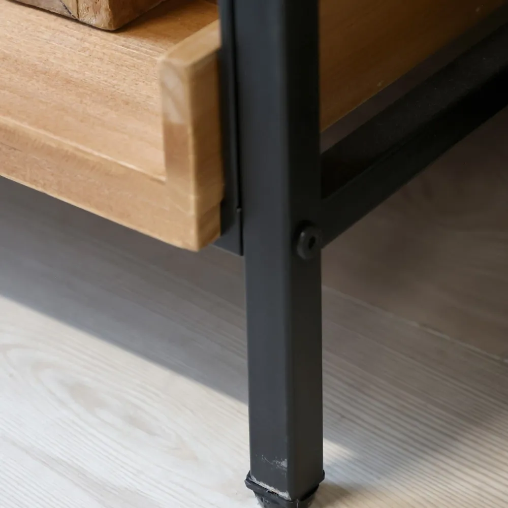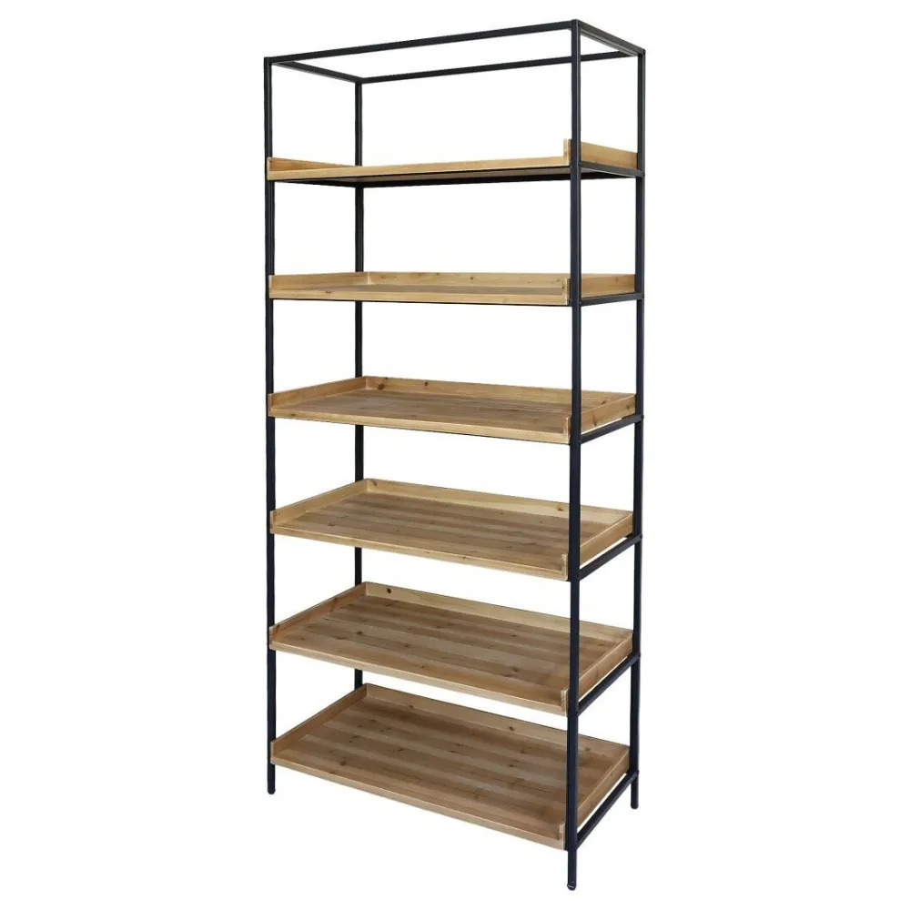 Regal mit sechs Fächern für viel Platz zum Verstauen. Aus robustem Tannenholz und einem Gestell aus Eisen.