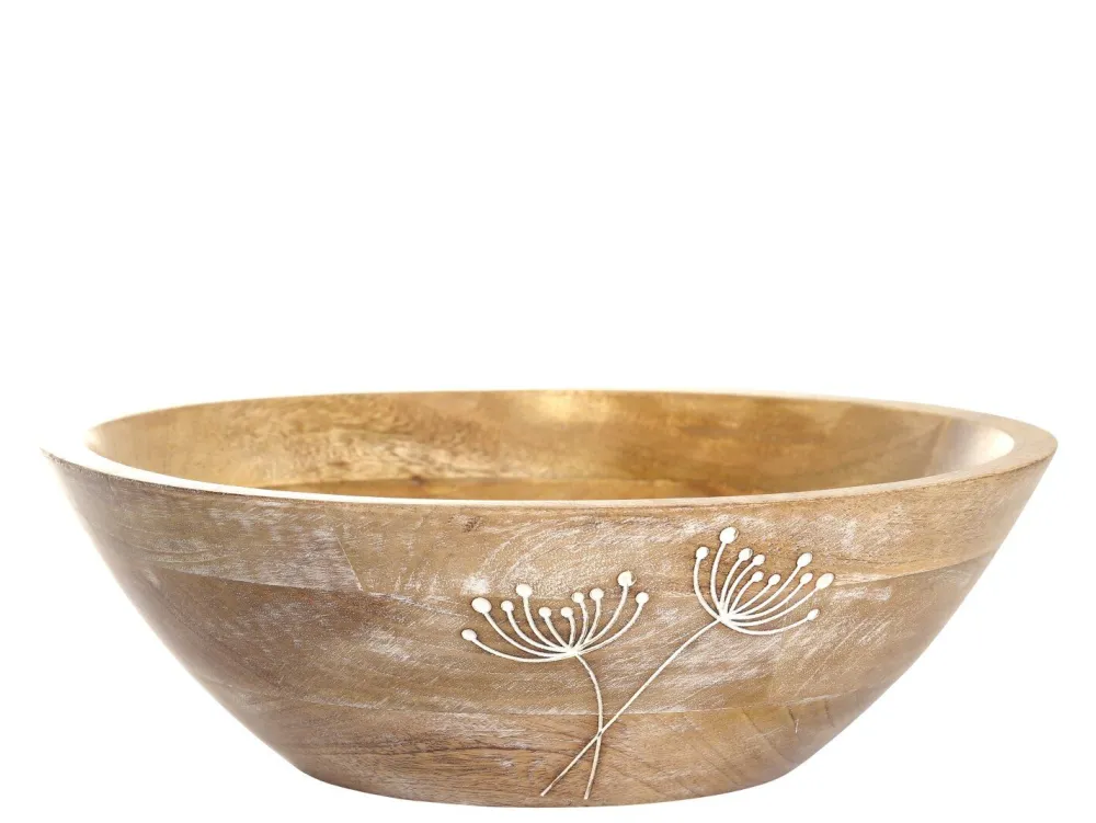 Stilvoll verzierte Salatschüssel aus hochwertigem Mangoholz. Die beste Option um deine Salate anzurichten.