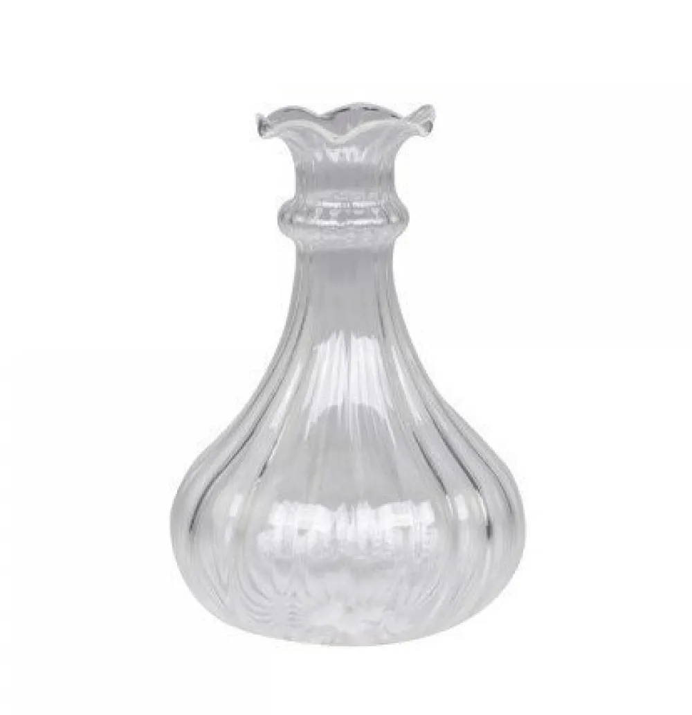 Diese raffinierte Glasvase von Chic Antique mit geschwungenen Elementen ermöglicht es, neue Lieblingsblumen stimmig zu platzieren.