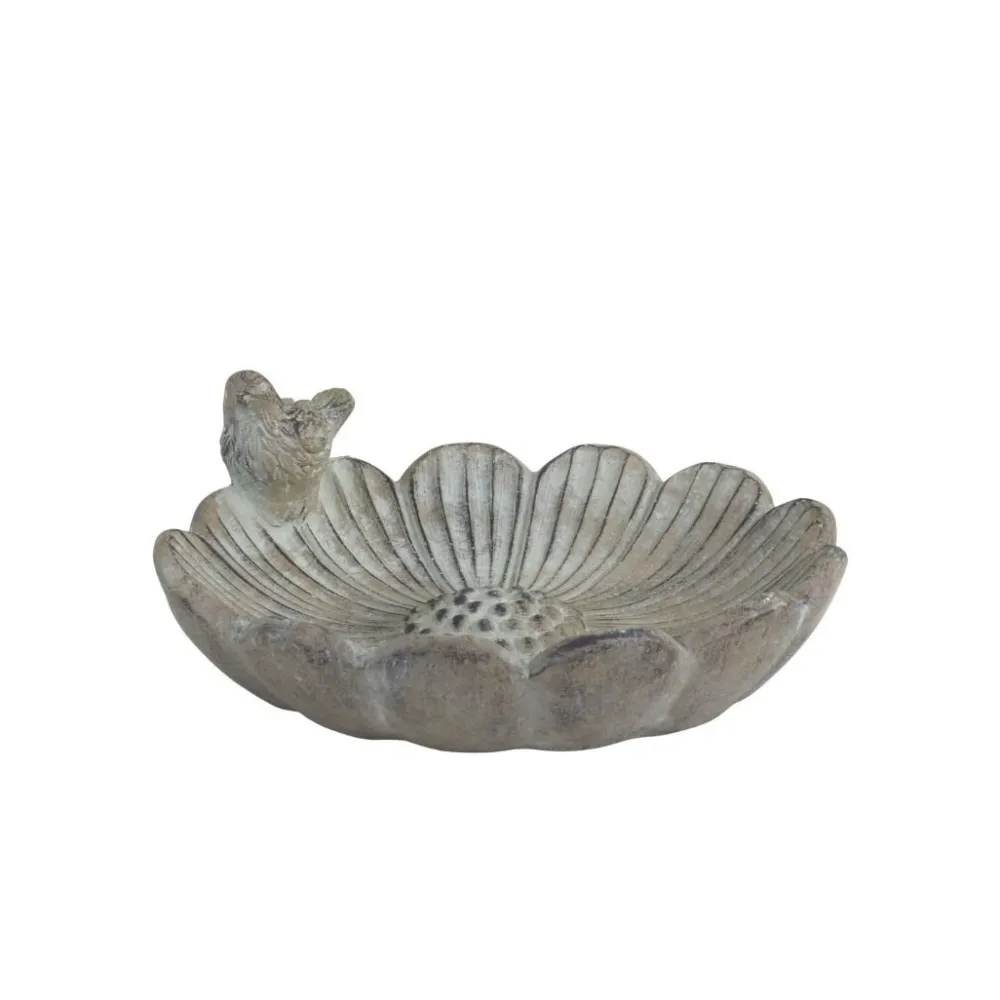 Chic Antique Vogelbad Blume mit Vogel am Rand