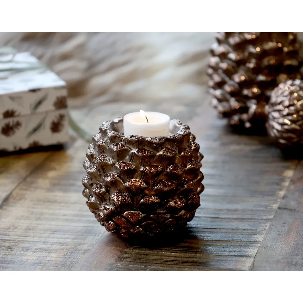 Chic Antique Zapfen Teelichthalter mit Glitzer
