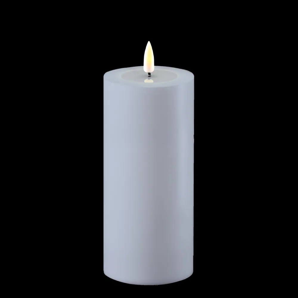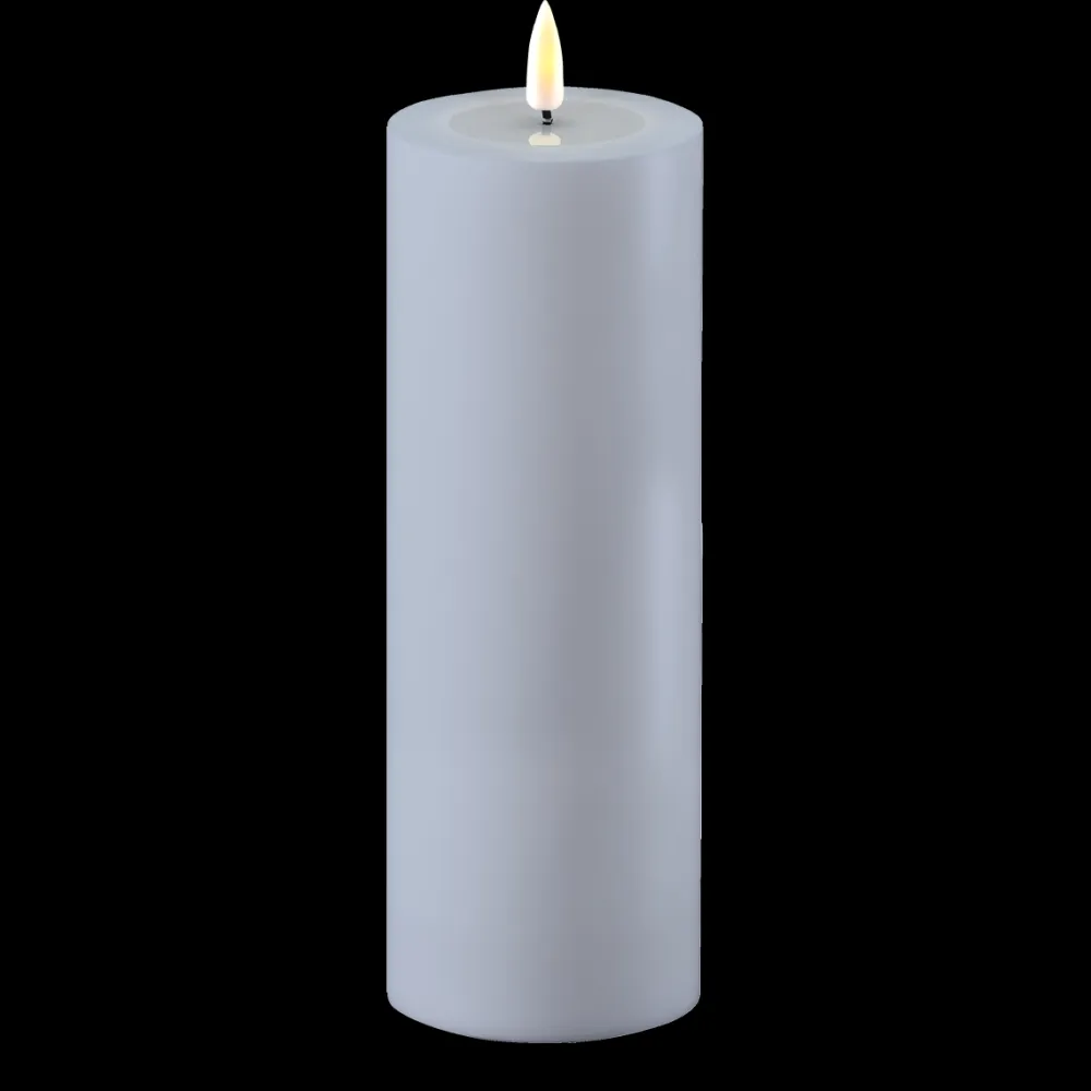 Deluxe Homeart LED Real Flame Outdoor Stumpenkerze staubig blau