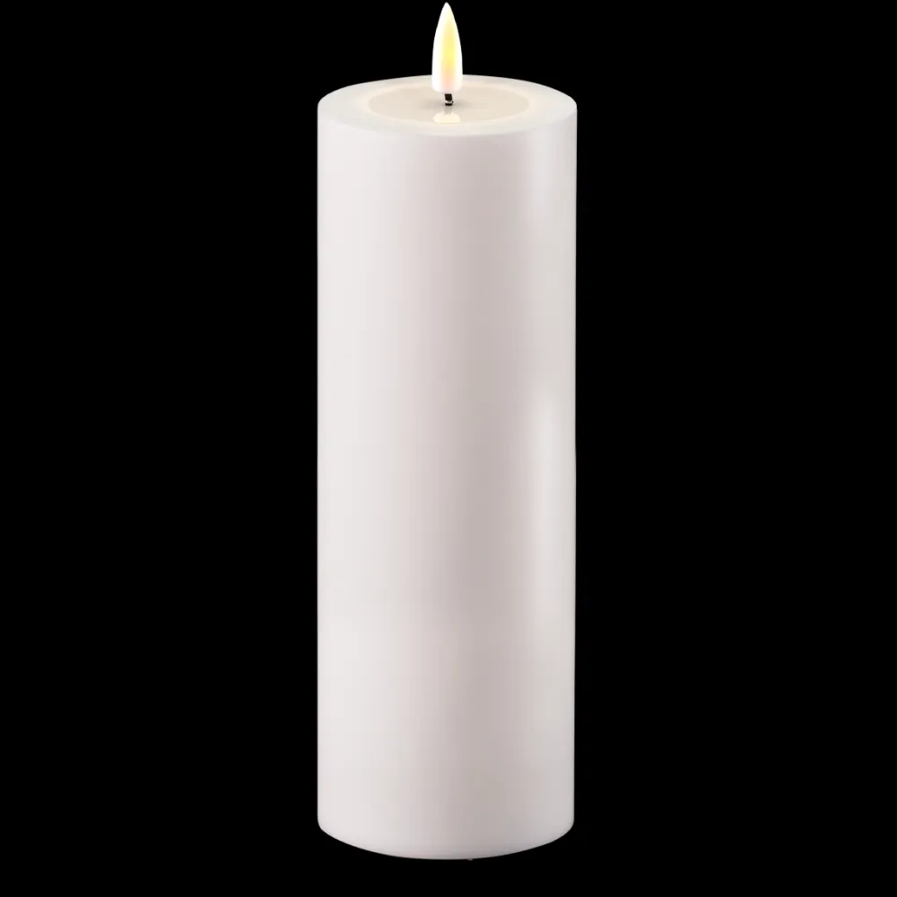 Deluxe Homeart LED Real Flame Outdoor Stumpenkerze weiß