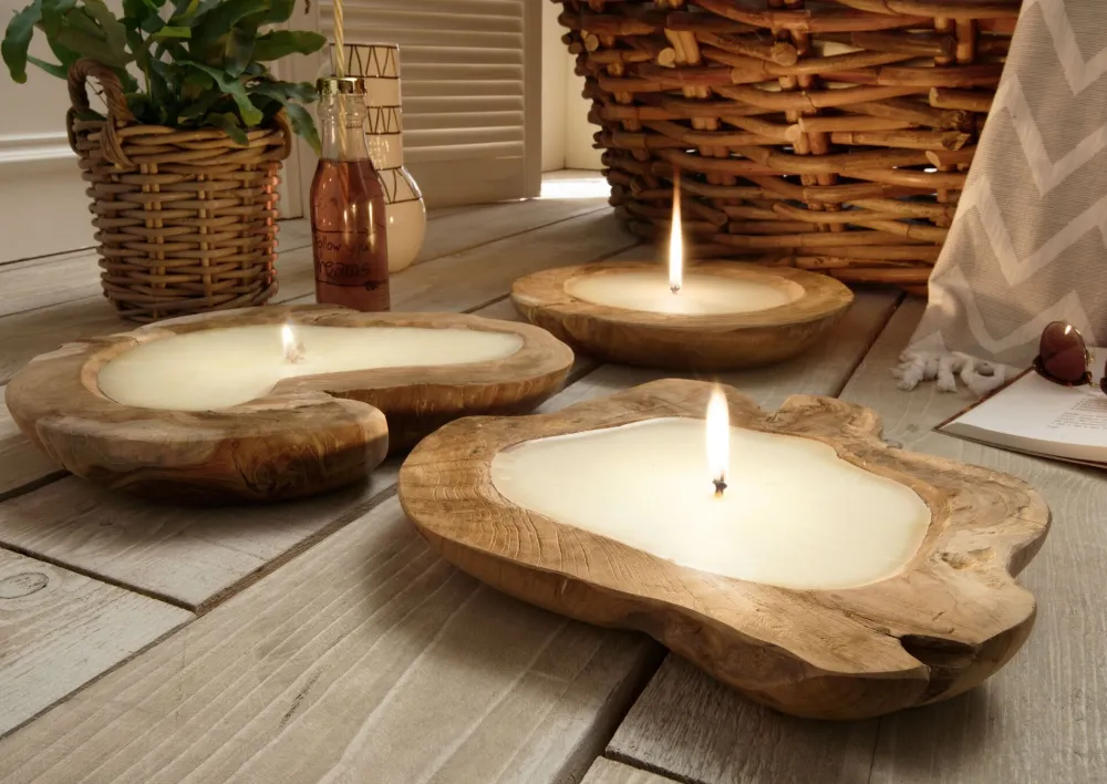Faktorei Kerze in Teakholzschale natur