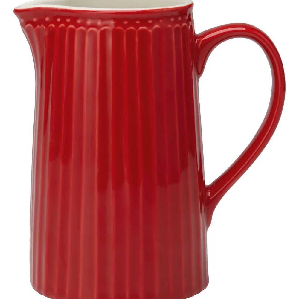 Wundervolle Kanne aus der Serie Alice von GreenGate mit einem Fassungsvermögen von einem Liter. Befülle diese eindrucksvolle Kanne aus Steingut mit selbstgemachtem Eistee, leckerem Kakao oder auch fruchtigen Säften und erfreue dich an dem gerillten Design.