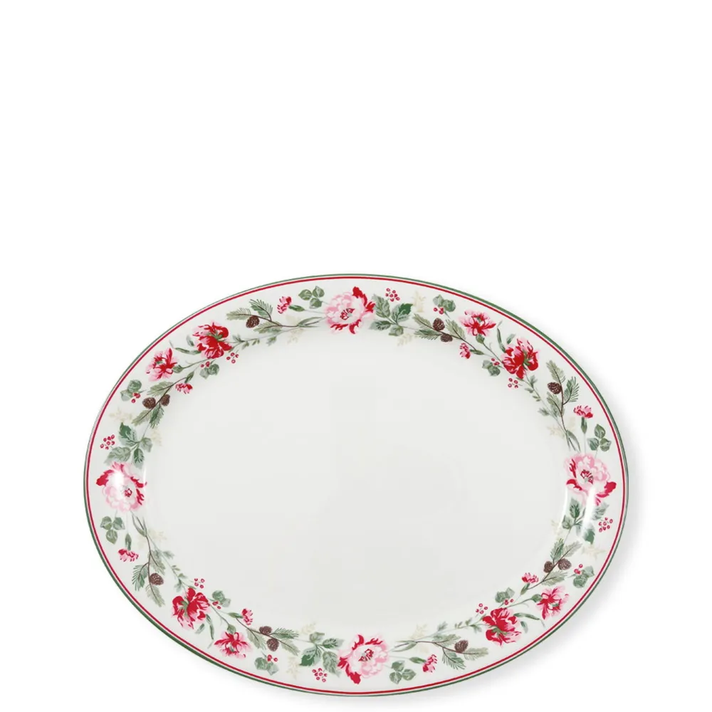 Speiseteller Servierplatte Leonora von GreenGate aus Dänemark. Der GreenGate Teller Leonora weiß ist ein dekorativer Servierteller aus hochwertigem Porzellan. Die klassischen Blumenmuster und Weihnachtssträuße bilden den Rahmen für ein festliches und zugleich romantisches Weihnachtsessen. Kombinieren Sie mit Everyday-Geschirr in rot und staubigem grün, um die klassischen Weihnachtsfarben zu unterstreichen. Dieser Artikel ist spülmaschinen- und mikrowellenfest.