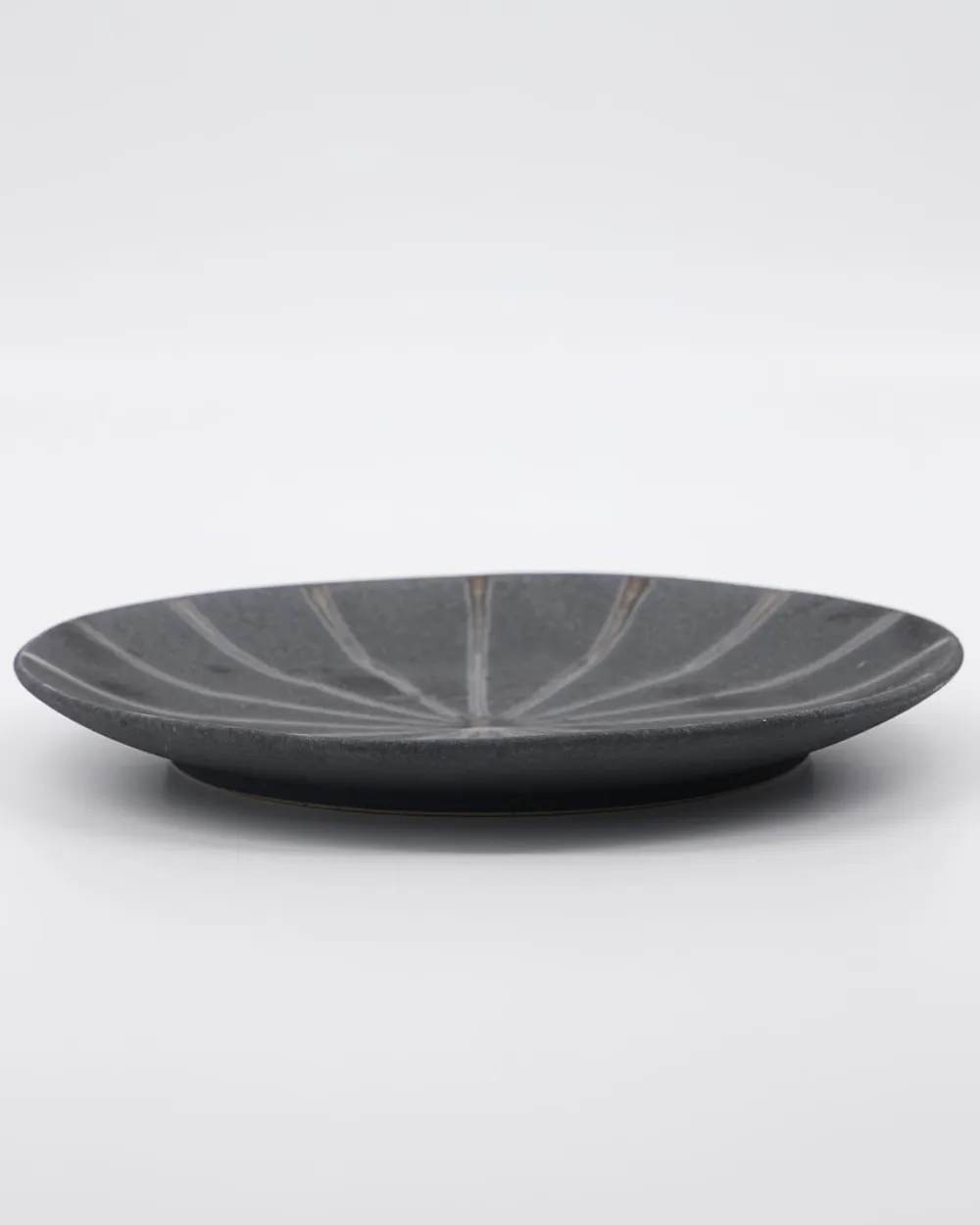 Dieser Teller namens „Suns“ von House Doctor wertet jedes schlichte Tischgedeck im Handumdrehen auf. Der dunkle Teller ist mit einem ausgefallenen Muster versehen und schafft so die optimale Atmosphäre auf einer hellen Tischdecke. Auch ein helles Dessert wie beispielsweise Käsekuchen lässt sich perfekt auf diesem Teller anrichten, denn die Kontraste wiegen sich optimal zueinander ab. Kombiniere den Teller mit verschiedenen Farben und Mustern und bringe deinen ganz eigenen Stil ins Spiel.