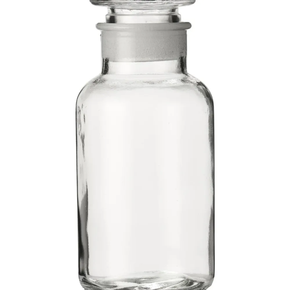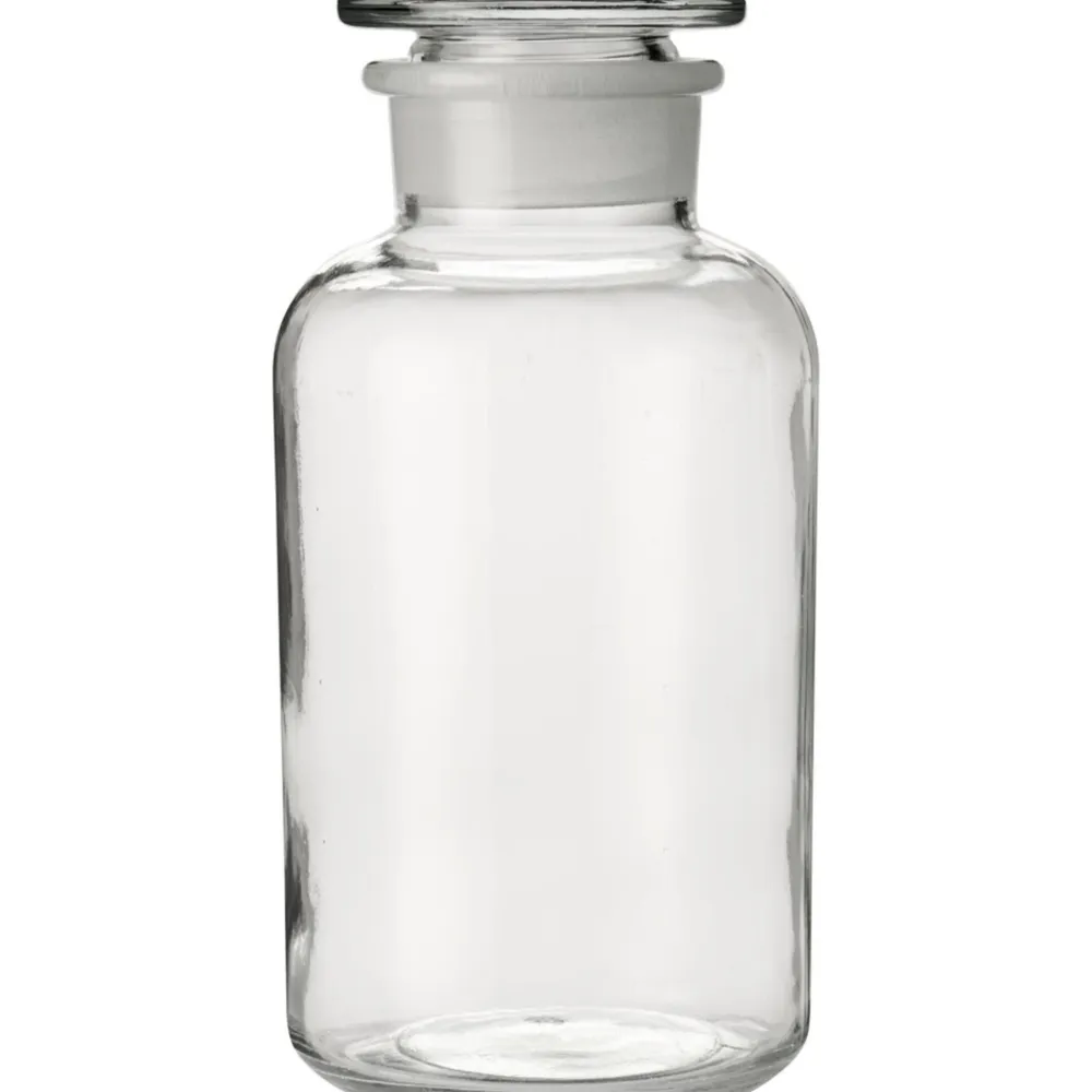 Klassisches Apothekerglas mit verschiedenen Fassungsvermögen. Der geschliffene Glasdeckel sorgt für einen dichten Verschluss, und die ml-Markierung ist deutlich auf dem Deckel sichtbar. Geeignet für die Aufbewahrung größerer Mengen und als stilvolle Lösung für Küche.