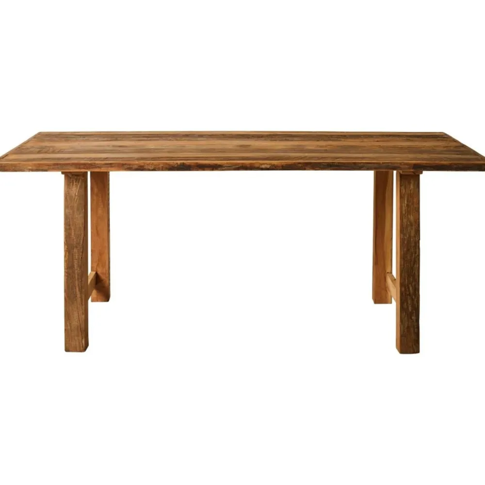 Holz. Der Esstisch wird in Indien aus recyceltem Abbruchholz gefertigt und erhält dadurch einen einzigartigen Look und natürlichen Charme. Wiegt ca. 50-55 kg.