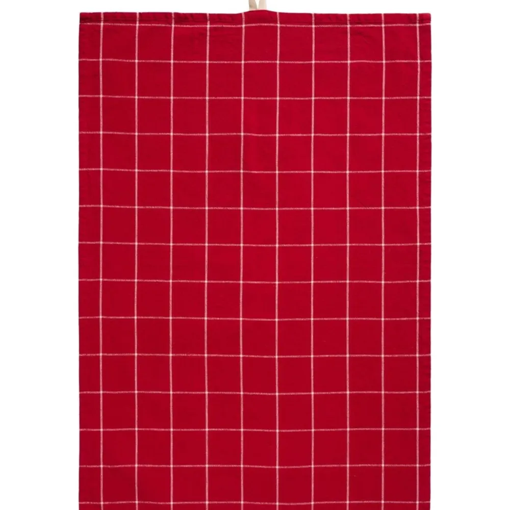 Geschirrtuch Silja rot mit großen naturfarbigen Karos von IB Laursen aus Dänemark.
