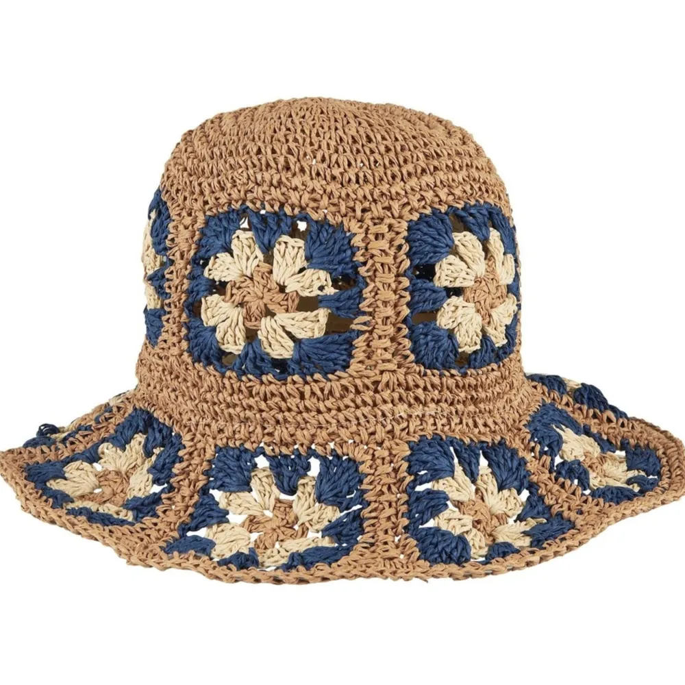 Einzigartiger und farbenfroher Sommerhut mit einem schönen, blumeninspirierten Muster in Blau, das einen frischen Look schafft. Der Hut ist handgefertigt aus Papiergarn, was ihn leicht und angenehm zu tragen macht. Perfekt für sonnige Sommertage, an denen Sie Stil, Funktionalität und einen Hauch von Farbe kombinieren möchten.