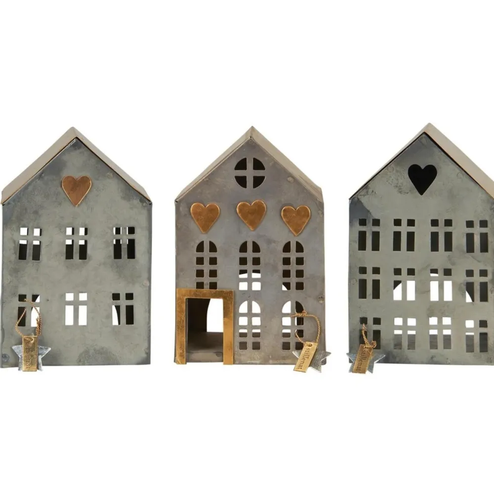 IB Laursen Metall Teelichthäuser Stillenat 3er Set