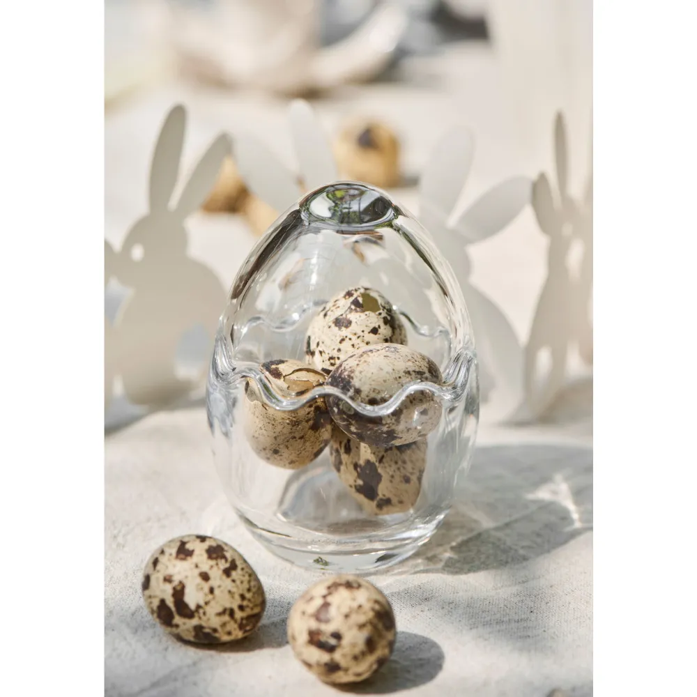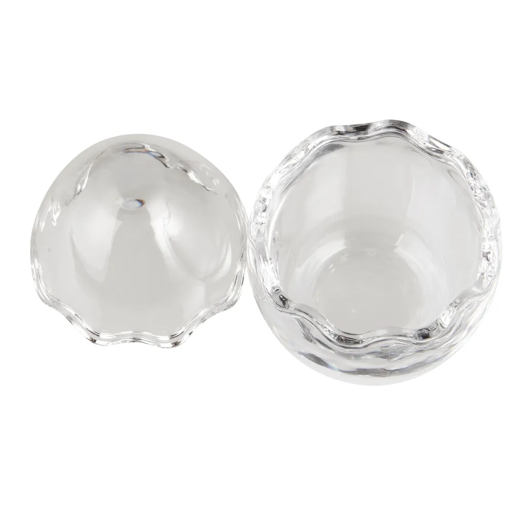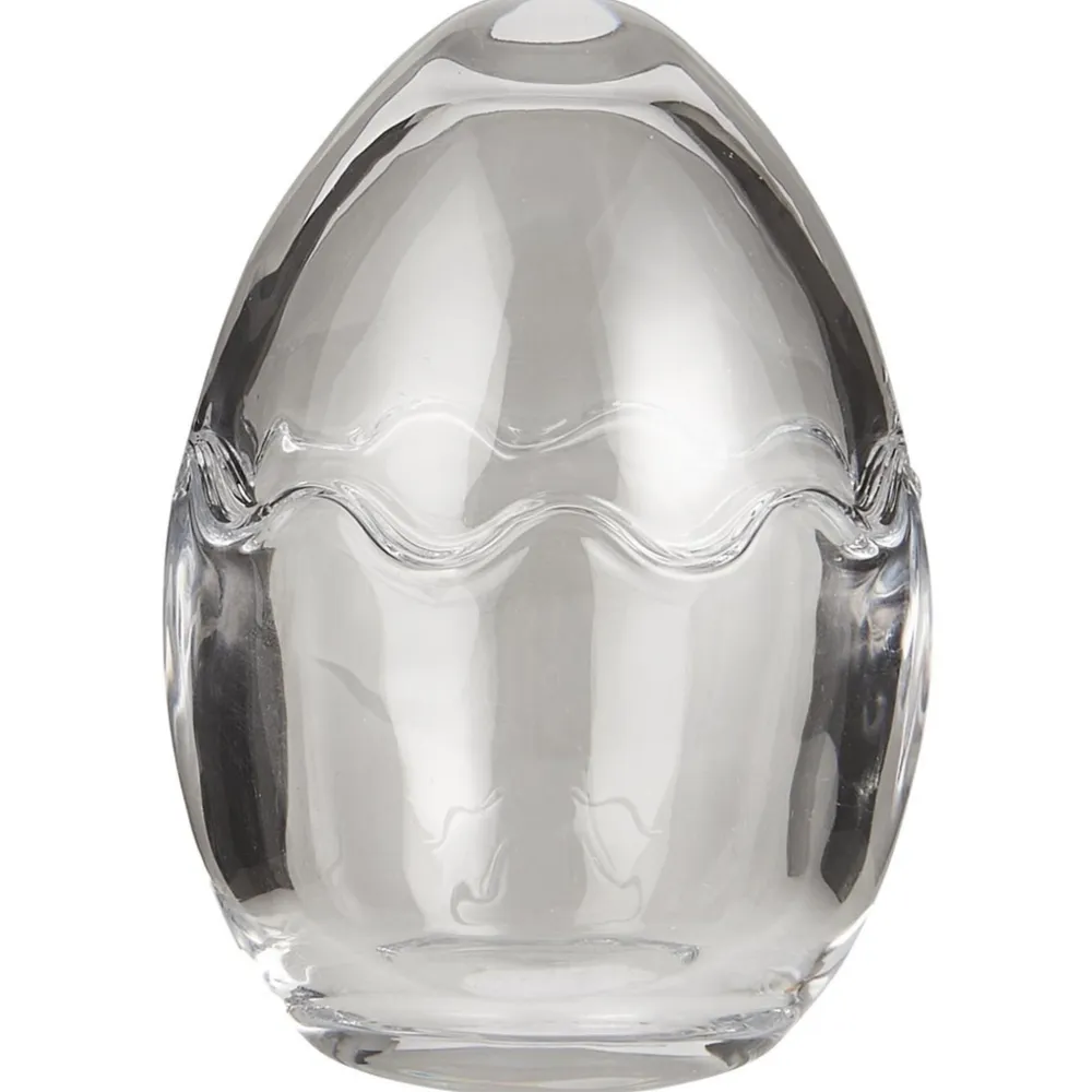 Ein elegantes Osterei aus Glas in zwei Teilen, ideal zur Dekoration oder als stilvolle Aufbewahrung für kleine Gegenstände. Ein perfektes Detail für den Ostertisch.