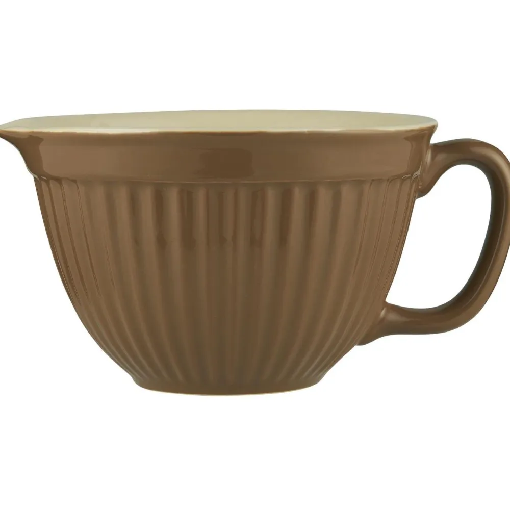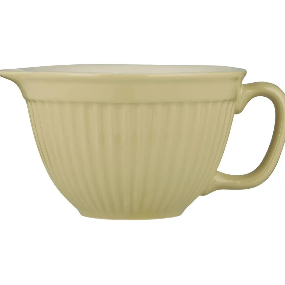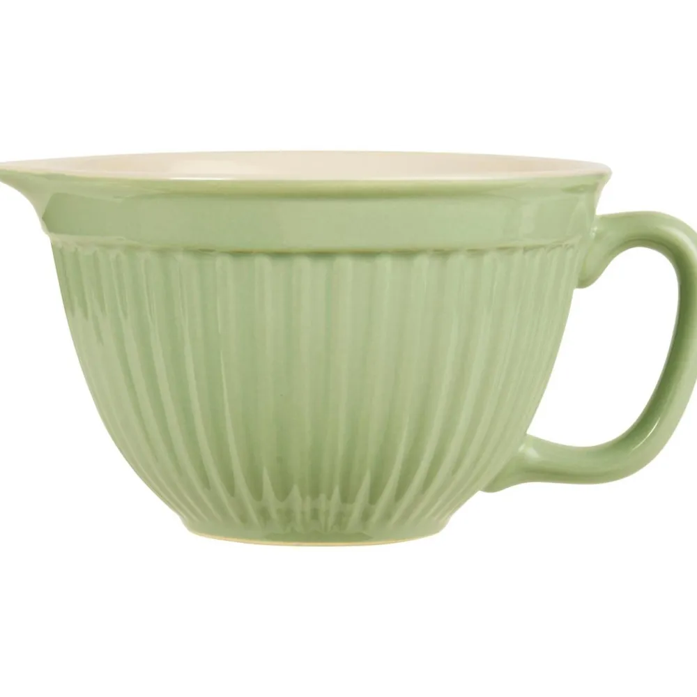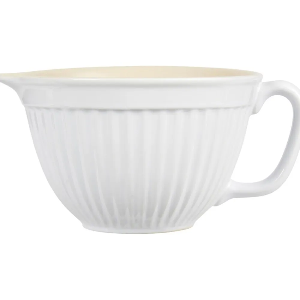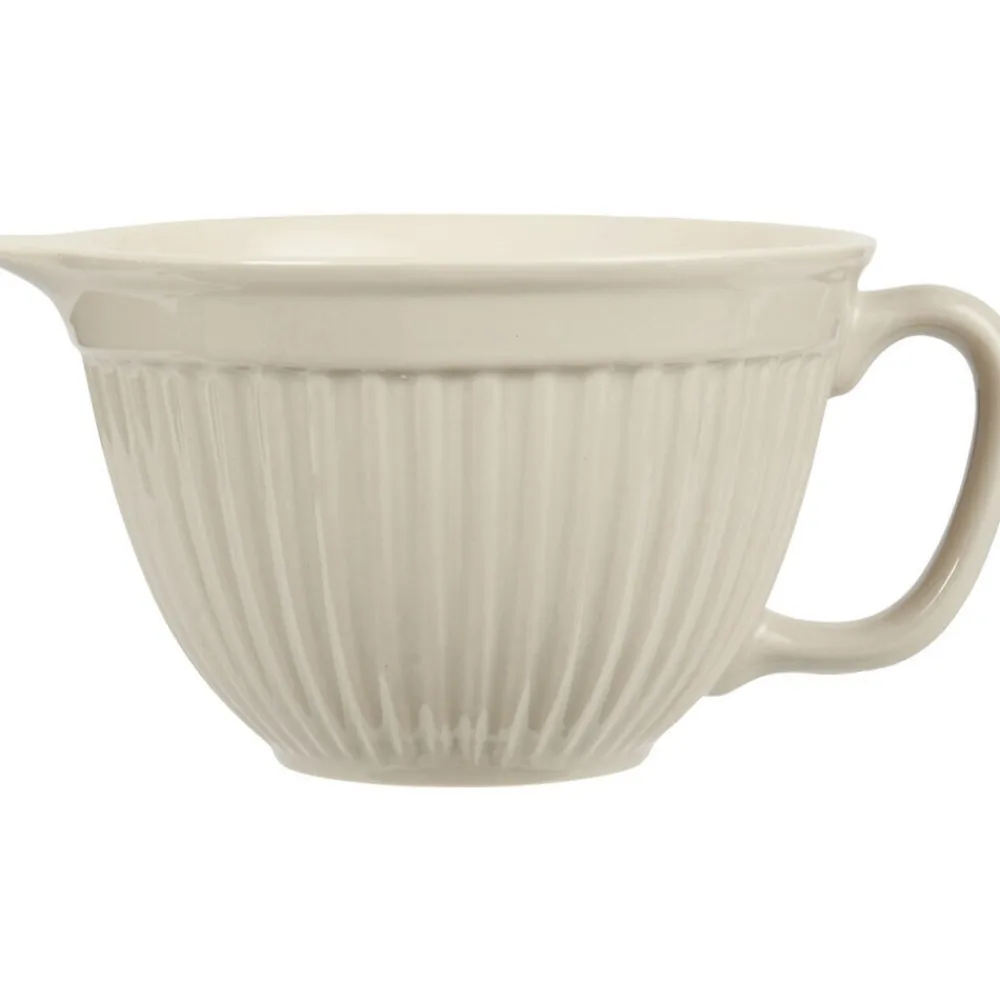 Die mit Henkel und Ausguss versehene Rührschüssel aus Steingut ist ein praktischer Helfer beim Kochen und Backen.