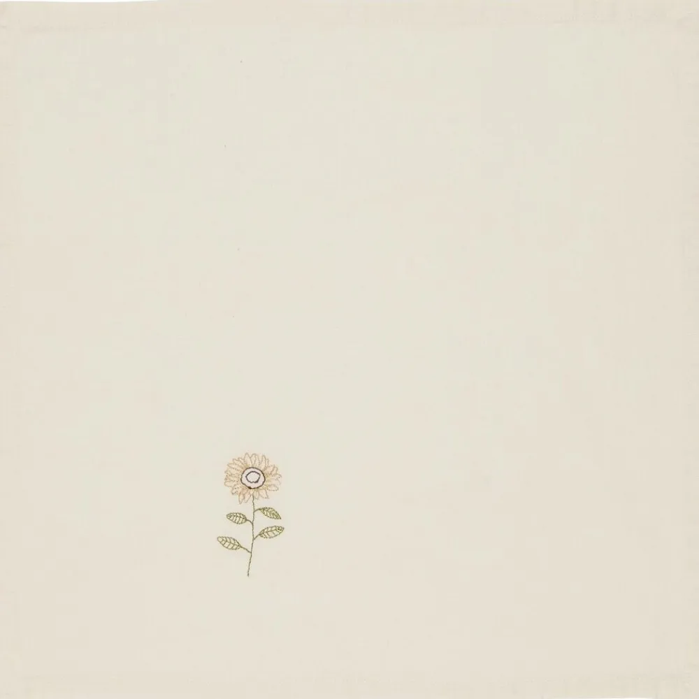 Dezente Stoffserviette mit liebevoll aufgestickten Blumen.