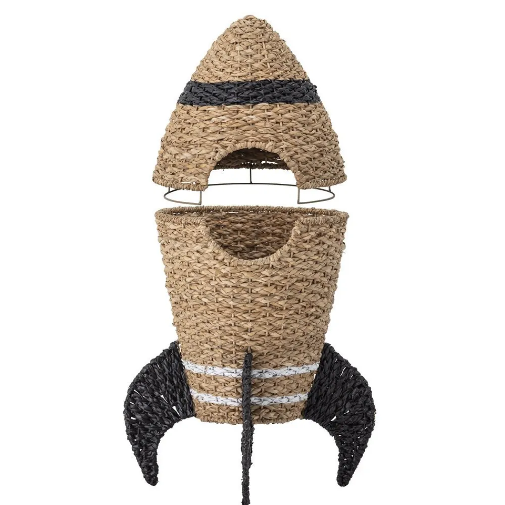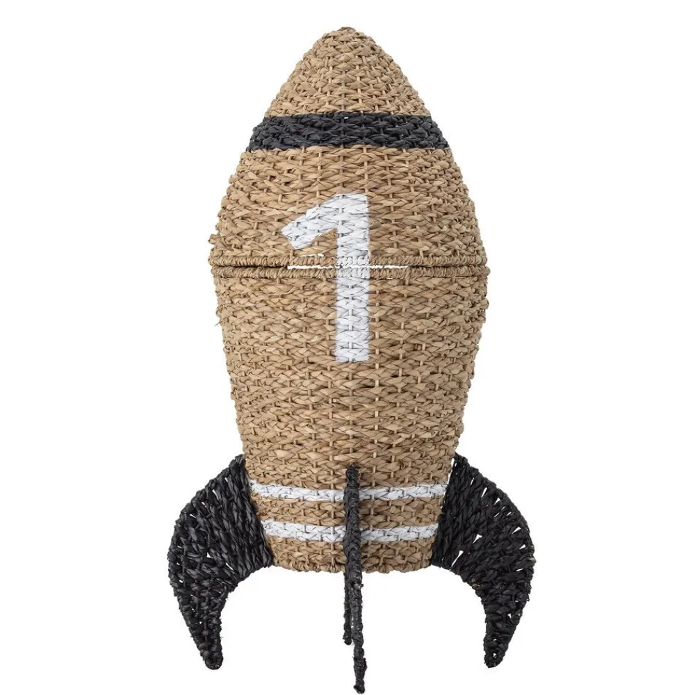 Nutze diesen wundervollen, handbemalten Korb Cosmina von Bloomingville Mini als praktische Aufbewahrungsmöglichkeit im Kinder Zimmer. In Form einer Rakete macht es mit diesem Korb aus Seegras und Rattan sogar Spaß aufzuräumen. Er bietet Platz für Spielzeug, Kuscheldecken oder Wäsche.