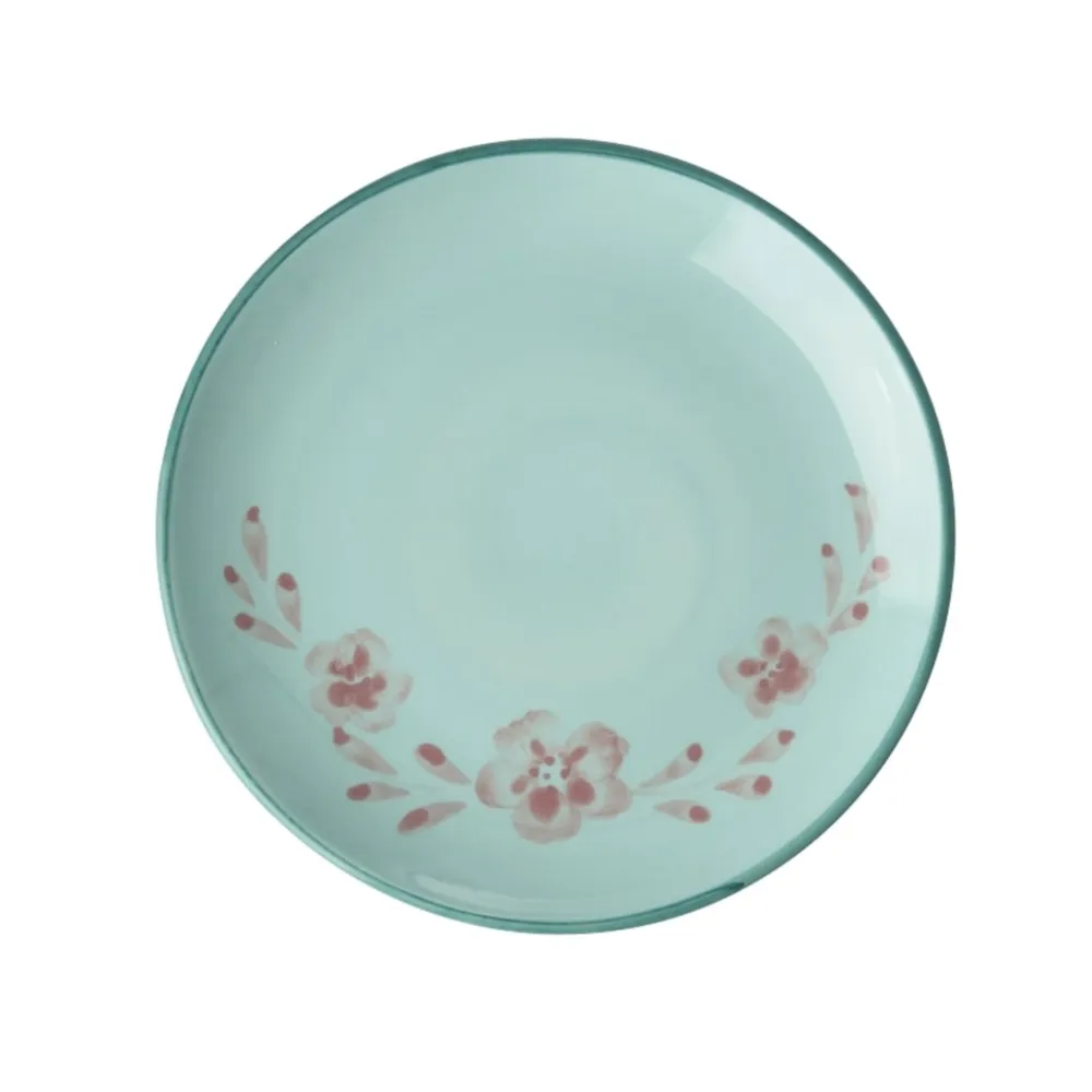 RICE Keramik Kuchenteller Handgemalt Blume Mint