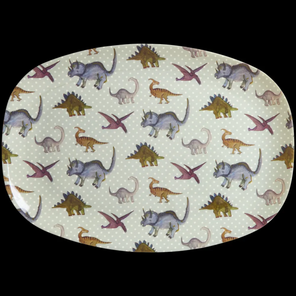 RICE Rechteckig Melamin Kinderteller New Dino Print
