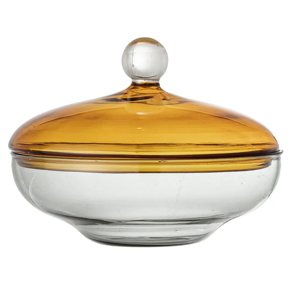 Dieser schöner Behälter Danni aus Glas von Bloomingville Cozy bringt ein warmes Glänzen in dein Zuhause. In der Küche kannst du ihn zur Aufbewahrung von Zutaten nutzen und im Rest des Hauses ist er ein tolles Dekoelement, das für sich oder befüllt mit Zapfen, Perlen oder Figuren wunderschön aussieht.