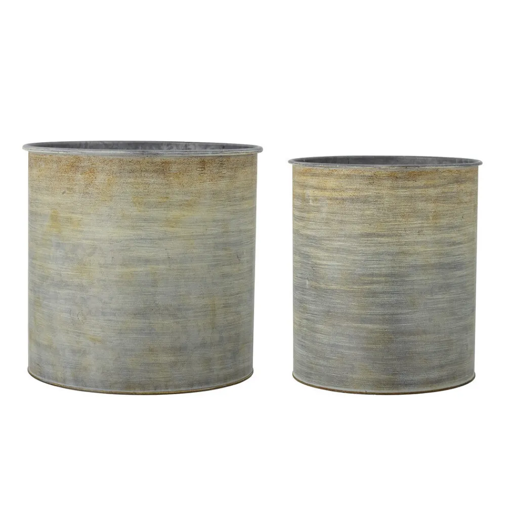 Meick Blumentopf, Natur, Metall von Bloomingville aus Dänemark. Die Blumentöpfe Meick von Bloomingville sind ein Set mit zwei Metallblumentöpfen in verschiedenen Größen. Das praktische und rustikale Retrodesign lässt Ihre Pflanzen im Außenbereich fantastisch aussehen.