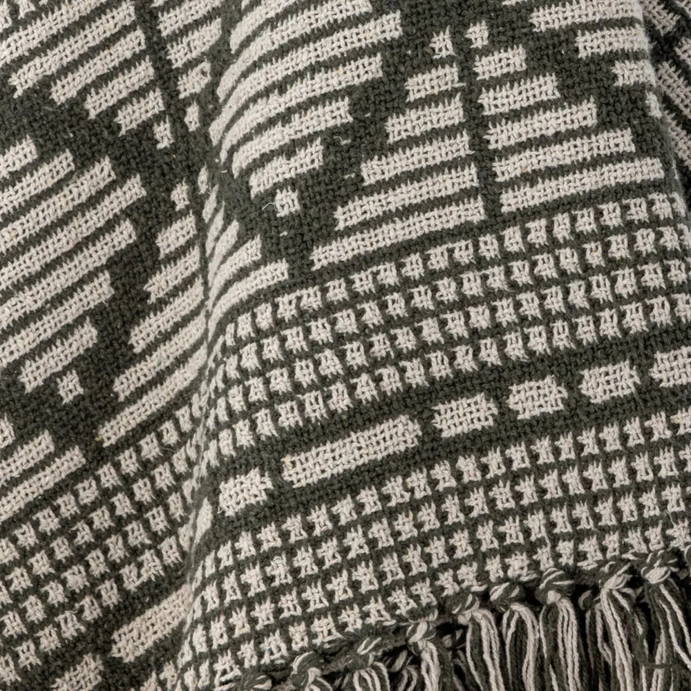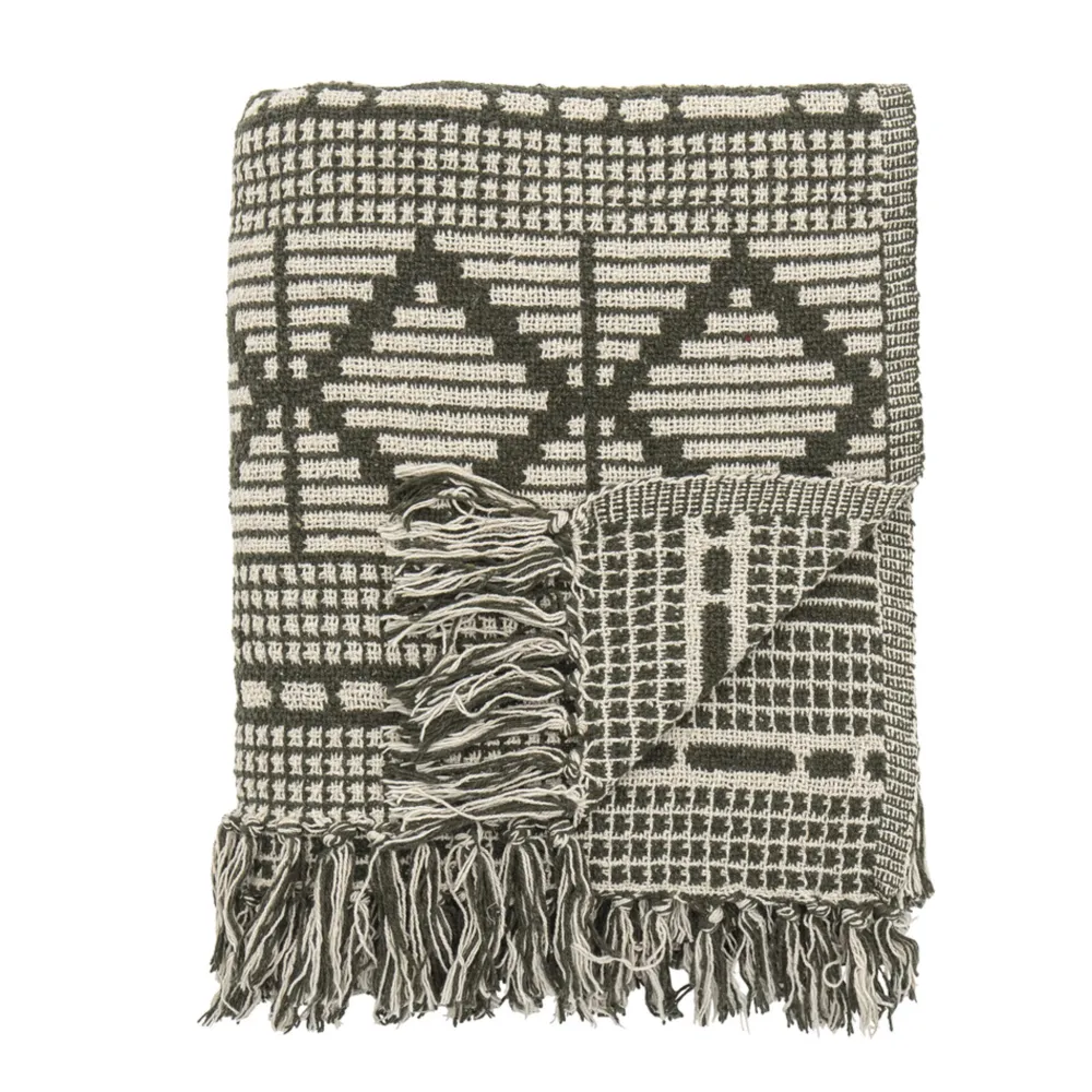 Gutte Decke, Grün, Recycelte Baumwolle von Bloomingville aus Dänemark. Die Kicki Decke von Bloomingville ist eine weiche und luxuriöse Decke in einem schönen grünlichen Farbton mit einem dekorativen Muster. Die Decke eignet sich perfekt, um Gemütlichkeit und Wärme in Ihrem Zuhause zu schaffen, und die weichen Fransen am Ende verleihen ihr einen zusätzlichen Hauch von Eleganz und Stil. Nutzen Sie sie zum Kuscheln auf dem Sofa oder als Decke auf dem Bett.