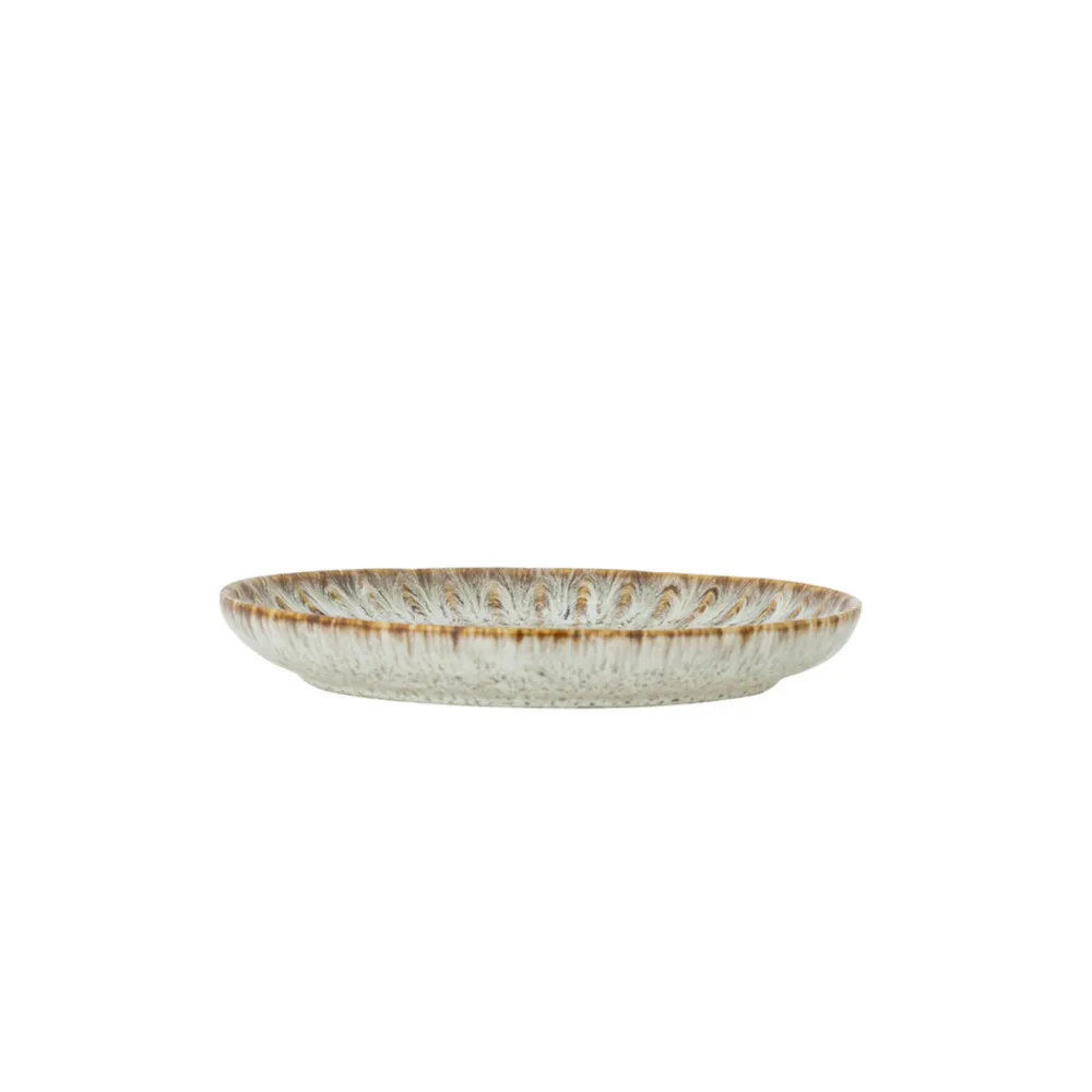 Fleur Teller, Natur, Steingut von Bloomingville aus Dänemark. Der Teller Fleur von Creative Collection ist aus Steinzeug mit einer reaktiven Glasur in hellen Grau- und Beigetönen hergestellt. Das schlichte Design und die glasierte Oberfläche bilden ein harmonisches Kabinett. Die Beschaffenheit der Glasur sorgt dafür, dass jeder Teller ein Unikat ist.