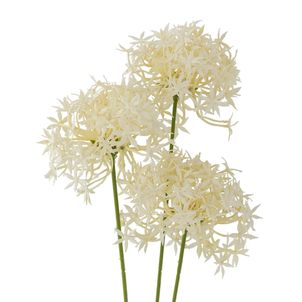 Künstlicher Allium Stiel Weiß, Kunstblume von Bloomingville aus Dänemark. Allium Künstlich Einzelstiel von Bloomingville fängt die Essenz des Frühlings und Sommers mit seinen luftigen Kugeln aus kleinen, zarten Blüten ein. Er eignet sich perfekt, um einem Blumenstrauß Eleganz zu verleihen, kann aber auch allein in einer Vase verwendet werden. Diese wartungsfreie Schönheit behält ihren Charme ohne die Notwendigkeit von Wasser oder täglicher Pflege bei. Formen Sie den Stiel vor der Benutzung, um das natürliche Aussehen der Pflanze hervorzubringen und sie an Ihre persönliche Dekoration anzupassen.