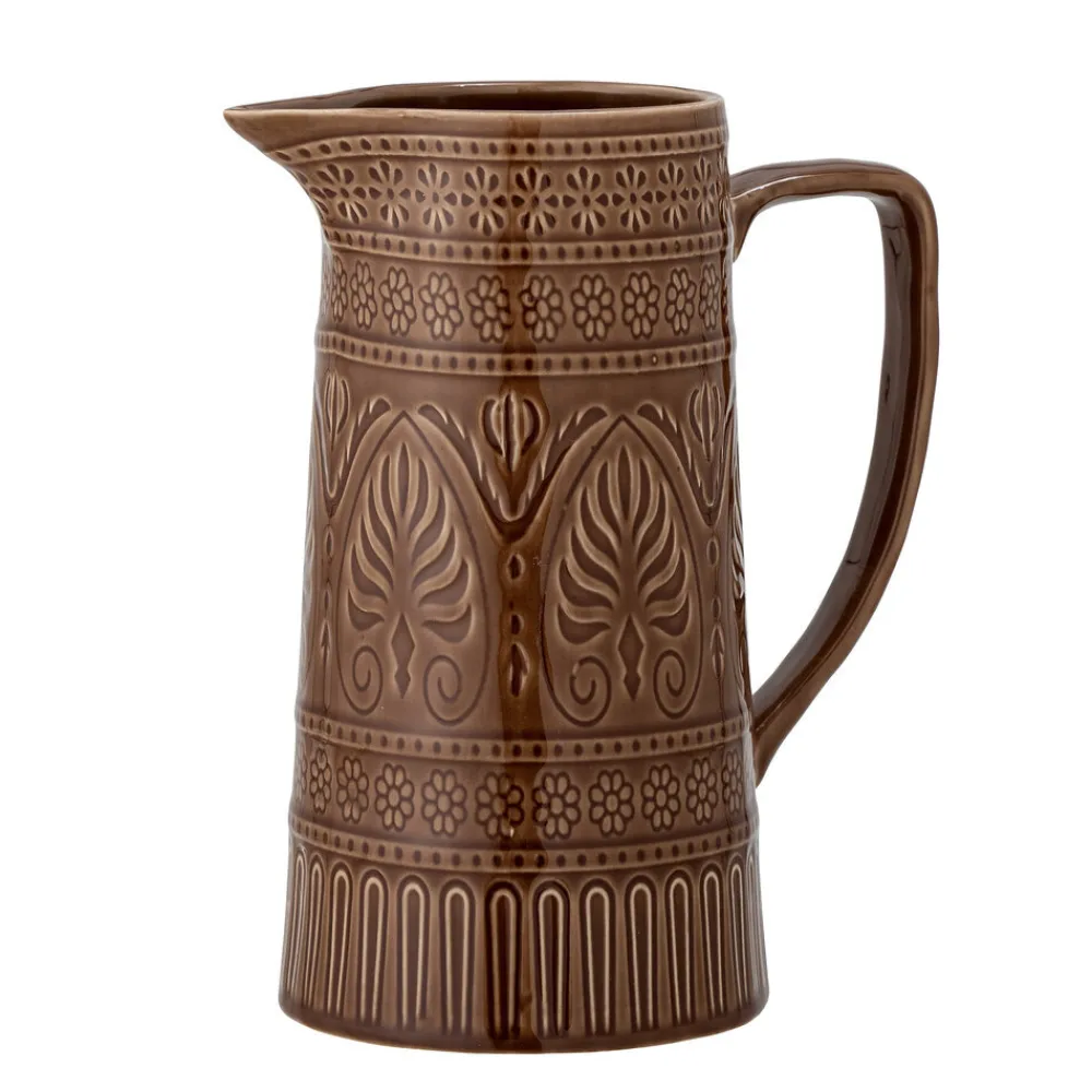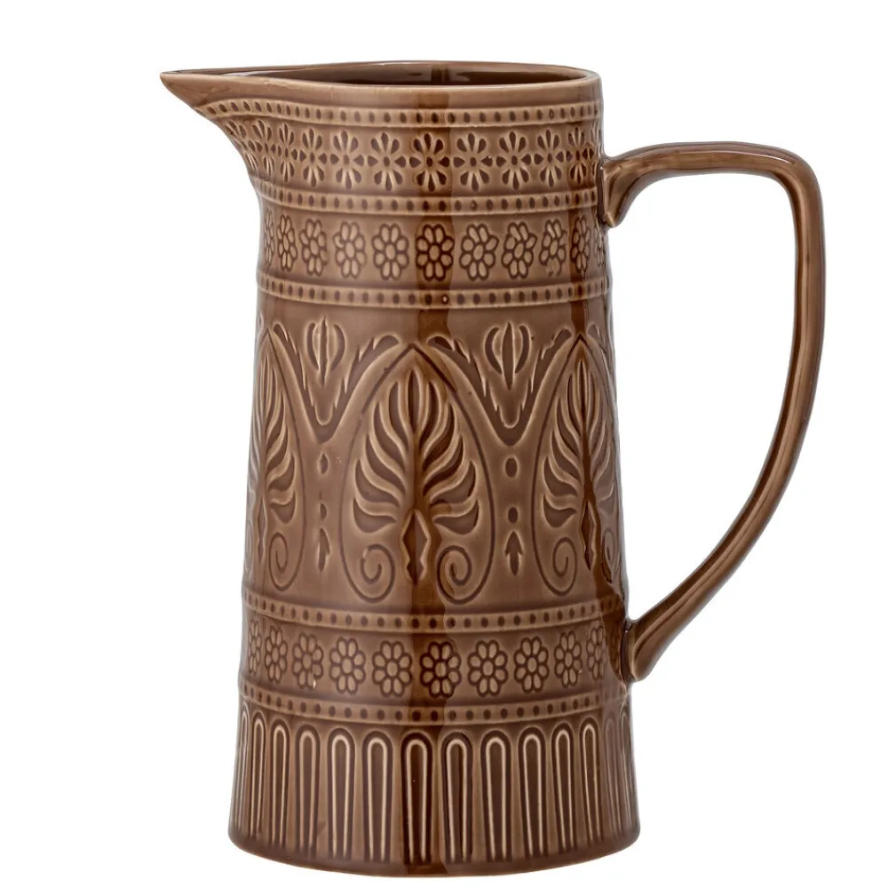 Rani Krug, Braun, Steingut von Bloomingville aus Dänemark. Die Kanne Rani von Bloomingville ist einzigartig und offenbart das Gefühl von Wohnlichkeit durch eine intensive und warme Farbpalette. Die Kanne ist aus braunem Steinzeug gefertigt, und aufgrund der Natur der Glasur können Farbabweichungen vorkommen. Sie ist eine perfekte Ergänzung für Ihren Tisch, wenn Sie nach etwas suchen, das nicht nur funktionell, sondern auch schön ist. Spülmaschinenfest.