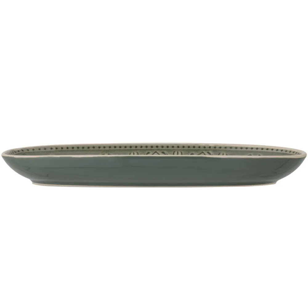 Rani Servierplatte, Grün, Steingut von Bloomingville aus Dänemark. Der Servierteller Rani von Bloomingville ist einzigartig und offenbart das Gefühl von Wohnlichkeit durch eine intensive und warme Farbpalette. Der Teller ist aus Steinzeug in Grün gefertigt, und aufgrund der Natur der Glasur können Farbabweichungen vorkommen. Der Teller ist eine perfekte Ergänzung für Ihren Tisch, wenn Sie nach etwas suchen, das nicht nur funktionell, sondern auch schön ist. Spülmaschinenfest.