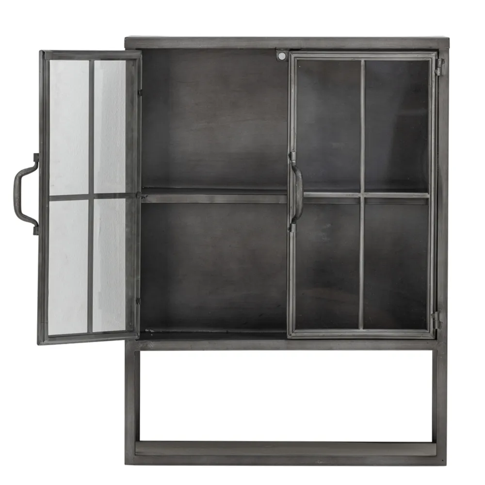 Sindre Kabinett, Schwarz, Metall von Bloomingville aus Dänemark. Sindre Skabet fra Bloomingville er fremstillet i metal med glasvinduer og synlige svejsninger, der giver det råt og industrielt udtryk. Skabet kan både hænge på væggen eller stå på gulvet, så det kan passe perfekt ind i dit hjem. Skabet er oplagt at bruge til opbevaring eller display af fine dekorationer, figurer og andet.